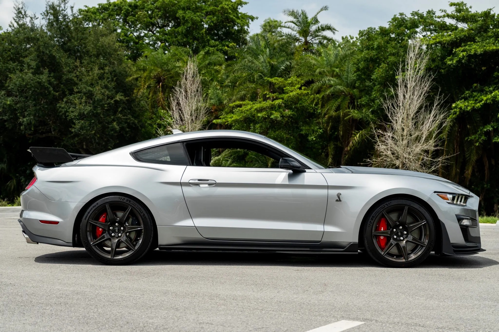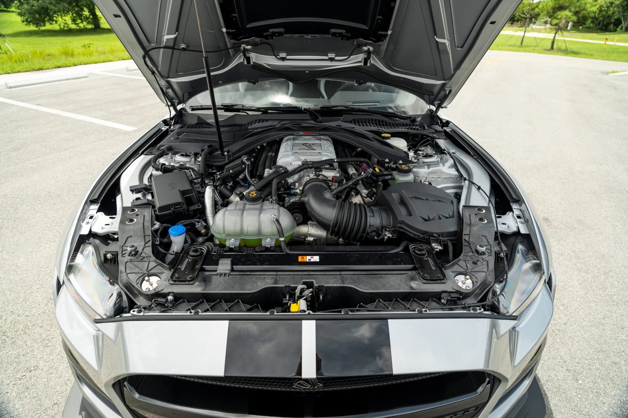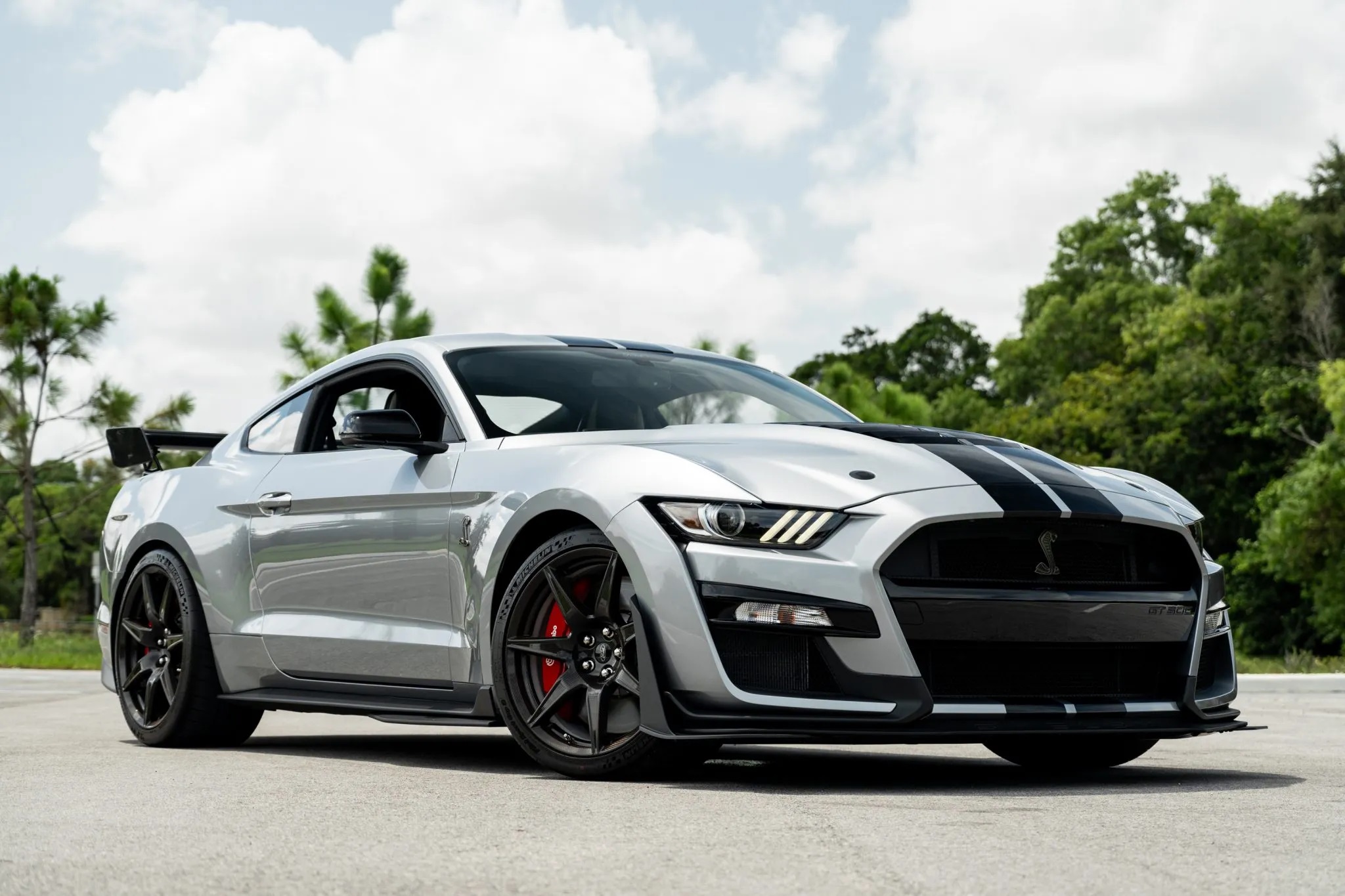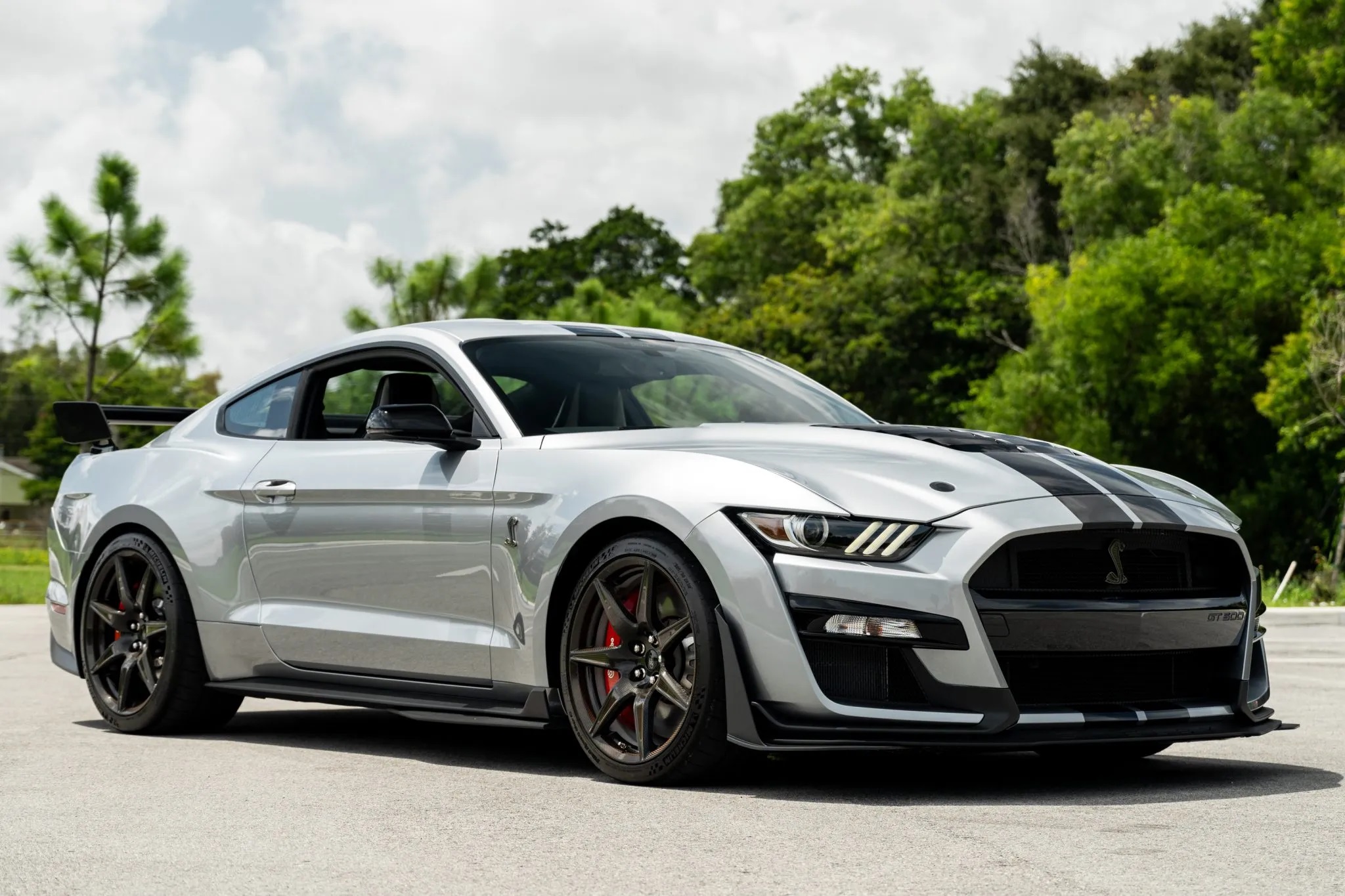 Currently up for sale on Bring a Trailer with just 40 miles on the odometer and in like-new condition, this striking Iconic Silver Metallic Shelby GT500 comes loaded with premium features, including Shadow Black painted racing stripes ($1,000) and the Carbon Fiber Track Pack ($18,500).