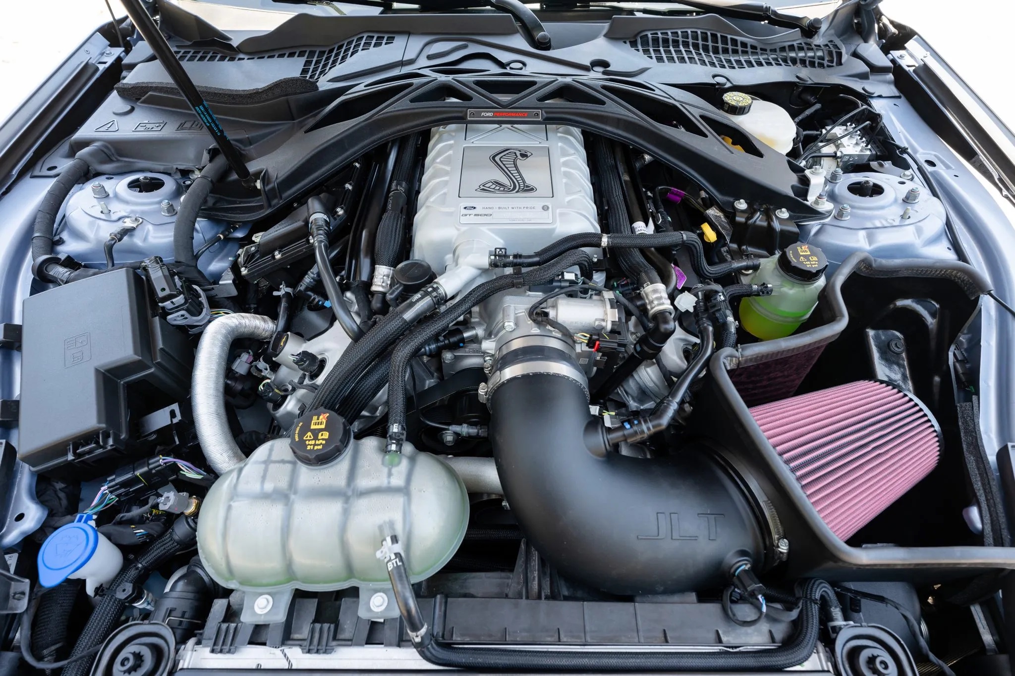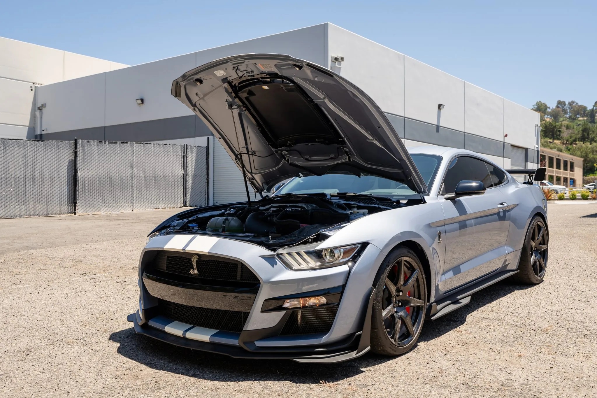 The 2022 Shelby GT500 was the most powerful street-legal Ford ever built until the introduction of the Mustang GTD, thanks to its 5.2-liter supercharged V8 engine generating 760 horsepower and 625 lb-ft of torque. This power is managed by a Tremec 7-speed dual-clutch automatic transmission, driving an independent rear end with a Torsen differential and 3.73:1 gears.