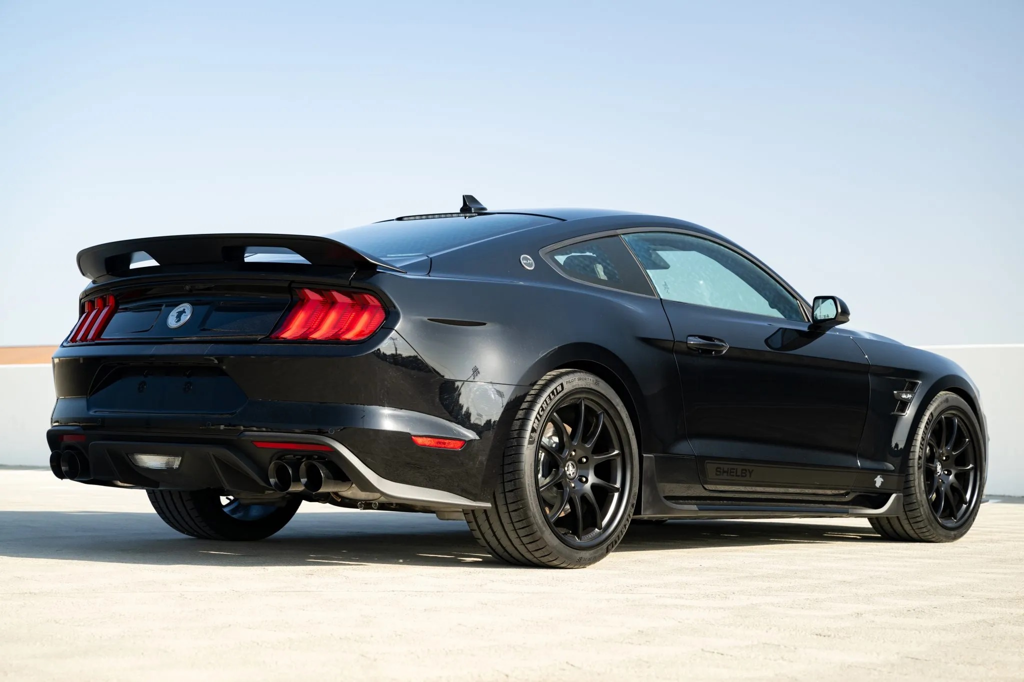 Powering the car is a supercharged 5.0-liter V8 engine mated to a six-speed manual transmission and a limited-slip differential. Additional features include a Borla exhaust system, 20-inch Shelby wheels, upgraded suspension, Brembo brakes, advanced infotainment, and a premium sound system.