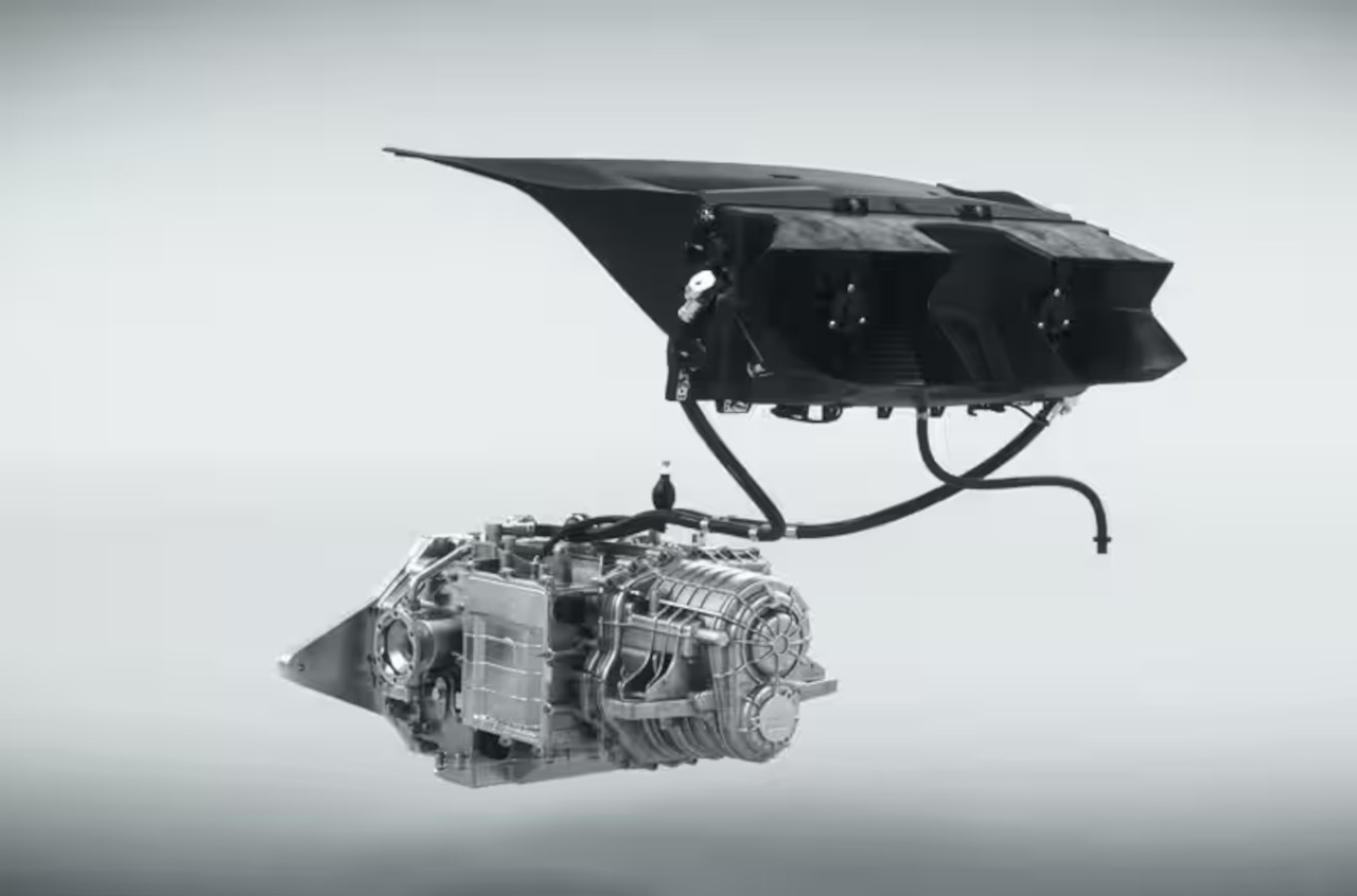This airflow is released via two large exhaust vents under the shaped lip spoiler at the rear of the “trunk,” and receives a boost via two air intake ports in front of the rear wheels, of which part is used to cool the rear brakes, and the other part is fed into the airflow passing through the gearbox heat exhanger unit.