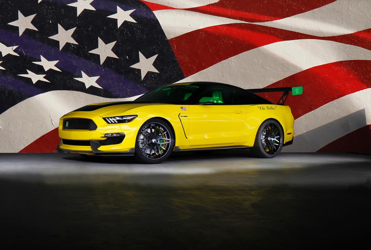 The Ford “Ole Yeller” Mustang exterior and interior were designed by Ford Design Manager Melvin Betancourt. Interior enhancements were supported by Ford Designer Nicole Rush and the Ford design fabrication team. The custom modifications were performed by MAD Industries, led by Chris Mangum. Additional contributers to the project include Ford Performance, Brembo, Carbon 2 Carbon, BASF Refinish, Pirelli Tires, Diode Dynamics, Rigid Industries LED Lighting, sPOD Power Distribution & Switching Components, 3M Window Films, PIAA, APR Performance, Rosen Electronics, FOCAL/The Source AV, Odyssey Battery, Recaro, Northern Engraving, Miko, American & Efird, Takata Holdings, Inc., Forgiato Wheels, Coverkings, L&G Enterprises, Ceramic Pro 9H and Signature Performance Tire & Wheel.