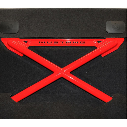 The entire kit comes complete with X-Brace, hardware, trunk-end trim panel and center luggage cover. Installation can be done with basic hand tools and no cutting or welding is necessary. Its not one of the cheapest upgrades for your Mustang with an MSRP of $1,599 but it sure does look good. Check out a few pics below or head on over to FordRacingParts.com for more info.