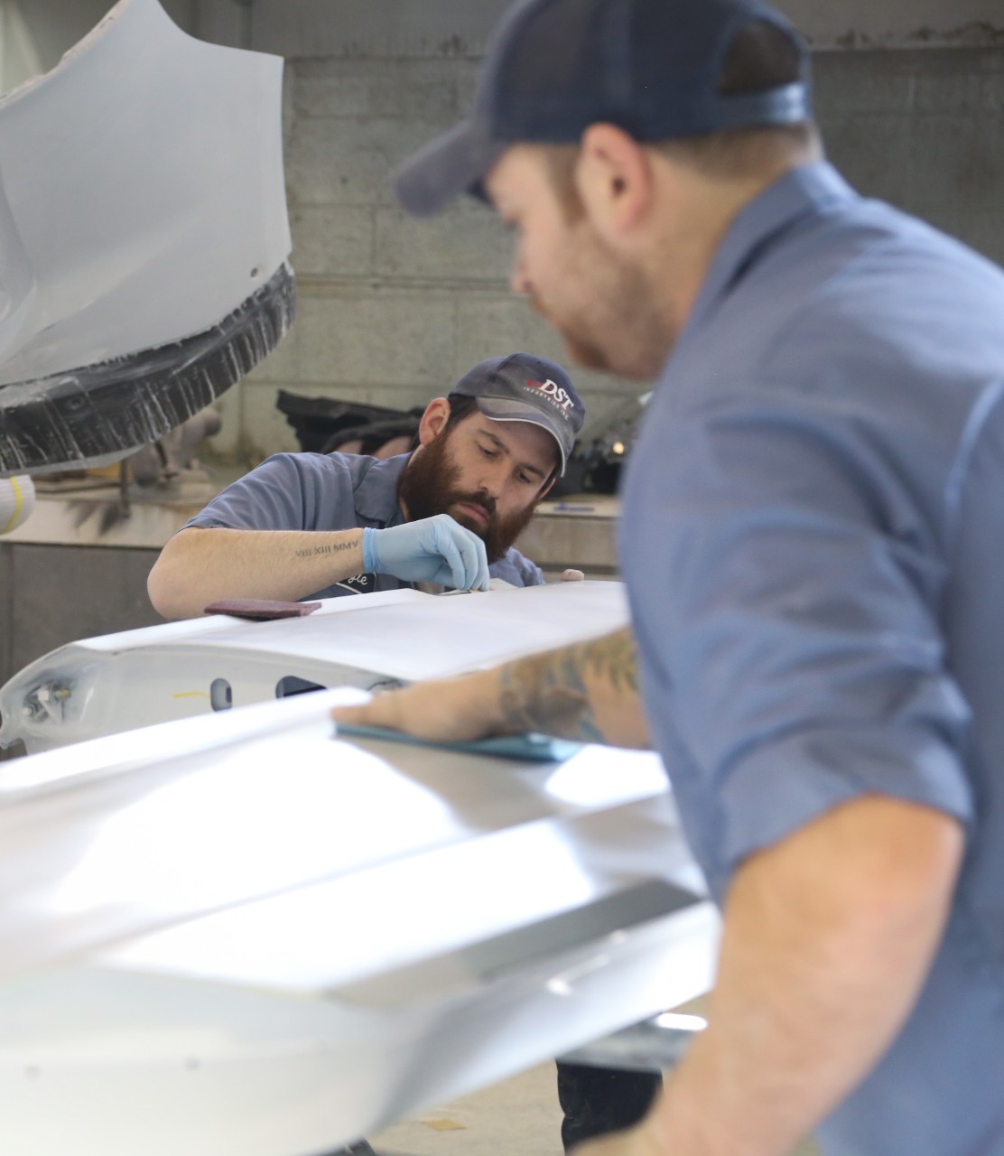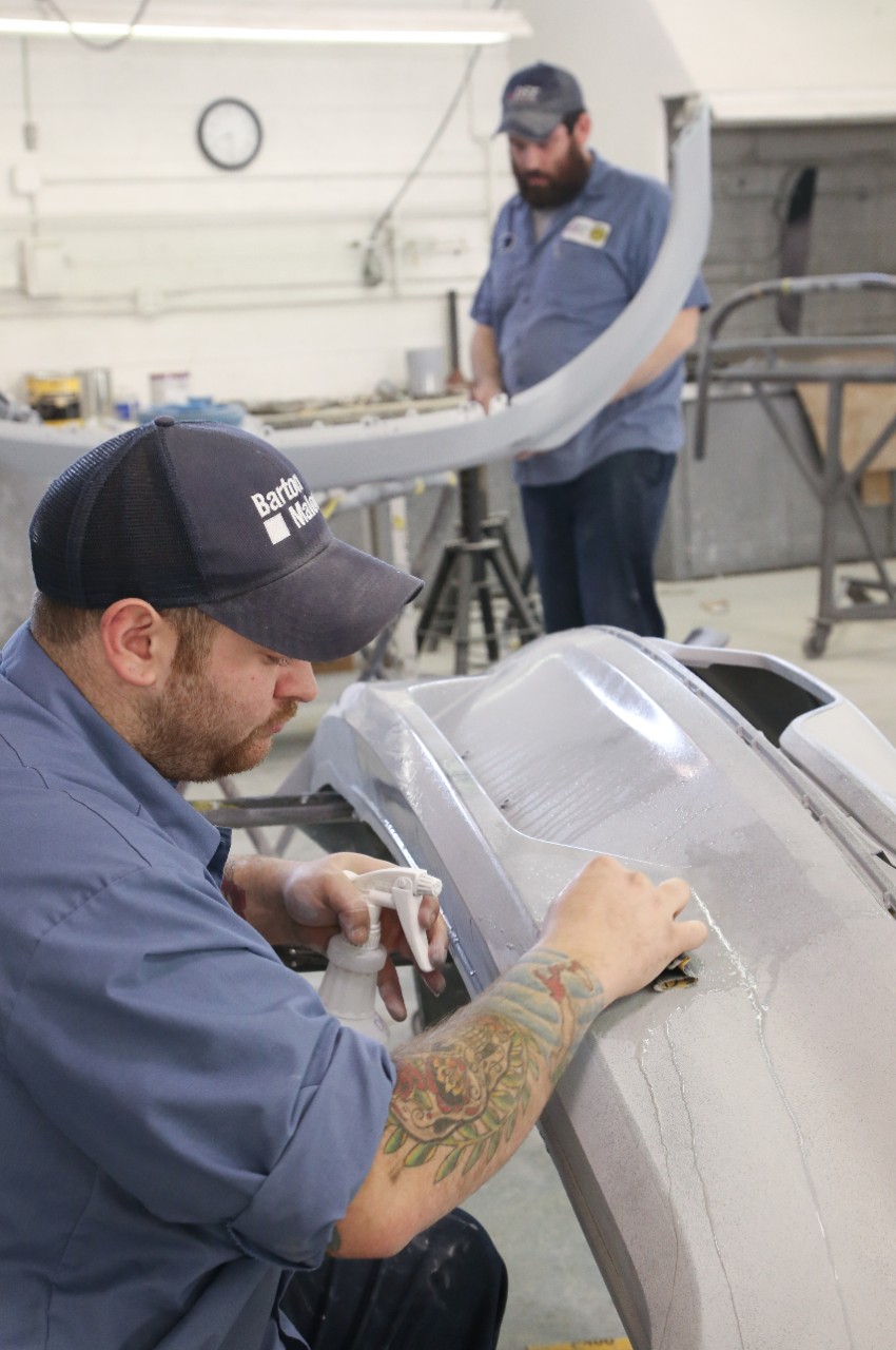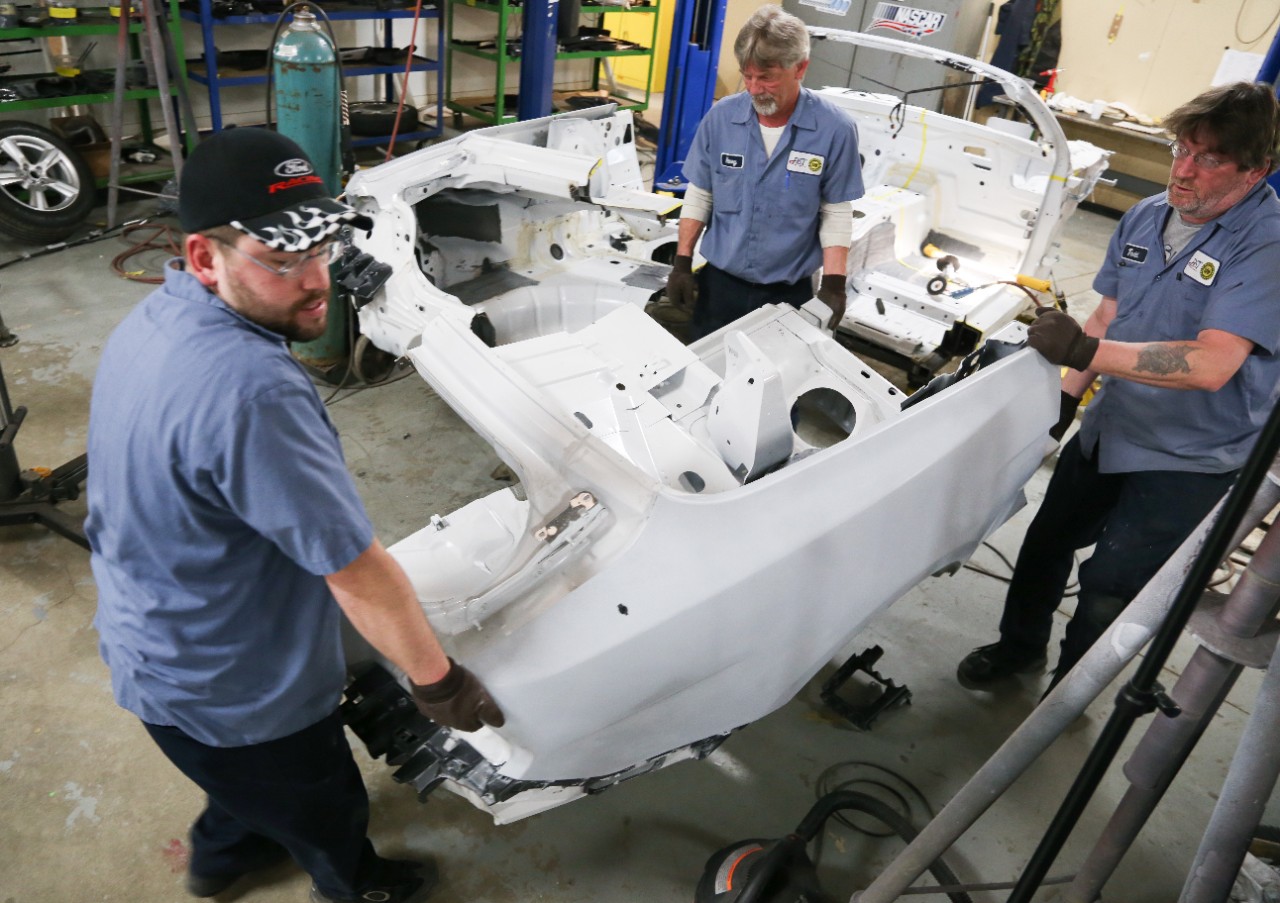 In preparing for the 2014 event, the team at DST worked with two early prototype Mustang convertible body shells. The car that would ultimately make the trip to New York was completely stripped down and the surface cleaned up to make sure everything looked perfect before it was sectioned and painted.