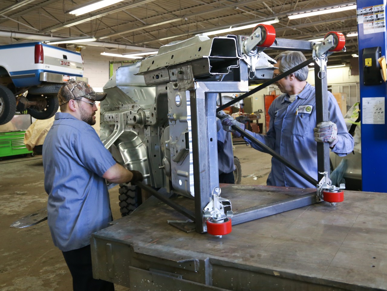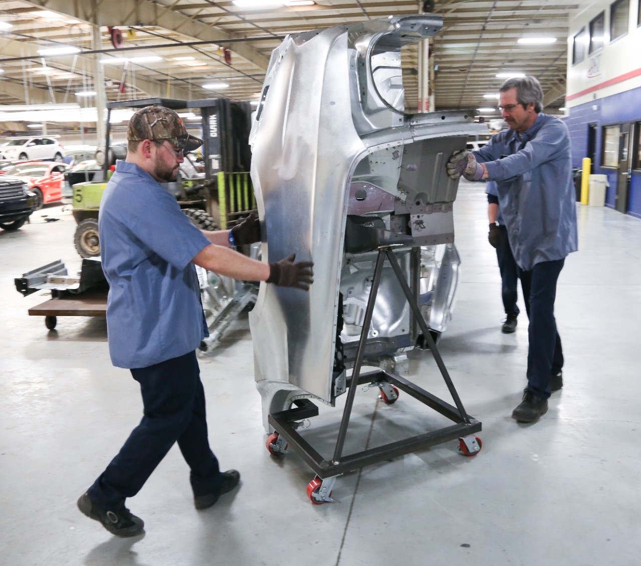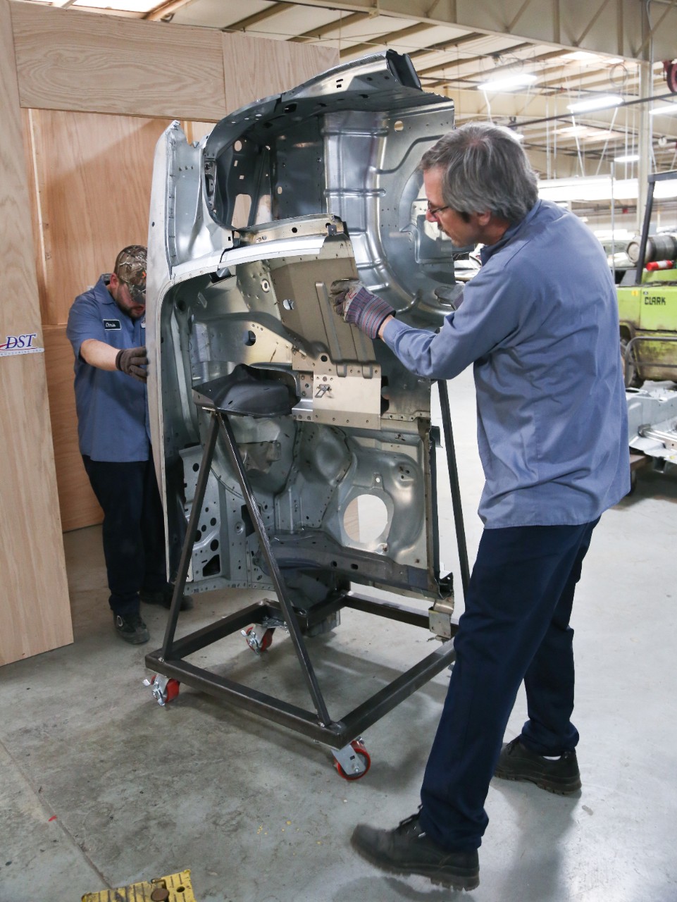 The second body was used as a donor by DST metal fabricators to determine where to make the cuts and to fit a custom-built tubular steel subframe that would hold all the sections together. The fabricators built custom rolling carts and wooden crates for each section.