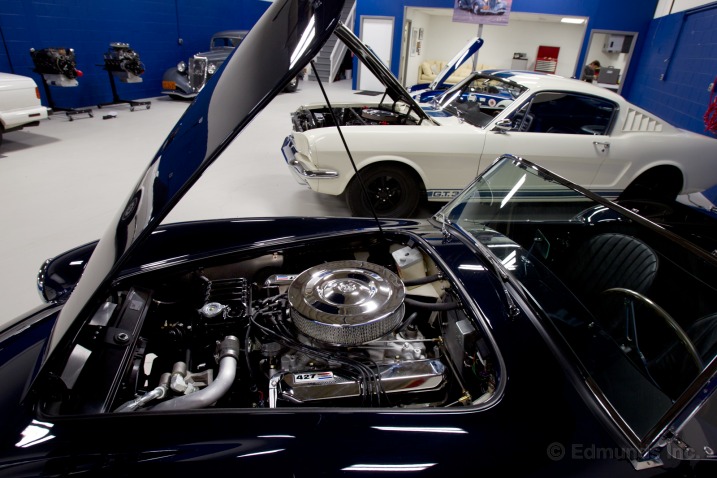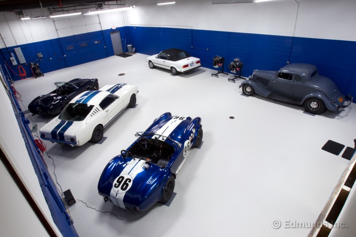 Farley’s collection includes a 1934 Ford five-window coupe with a full-race supercharged flathead, 1965 Shelby GT350, 1964 USRRC Competiton 289 Cobra (CSX 2531), Matte Black 2012 Boss 302 Laguna Seca #002 and a 1932 Ford Roadster. The other vehicle in the garage is a 1987 BMW 325i convertible bought new by his wife Cornelia.
