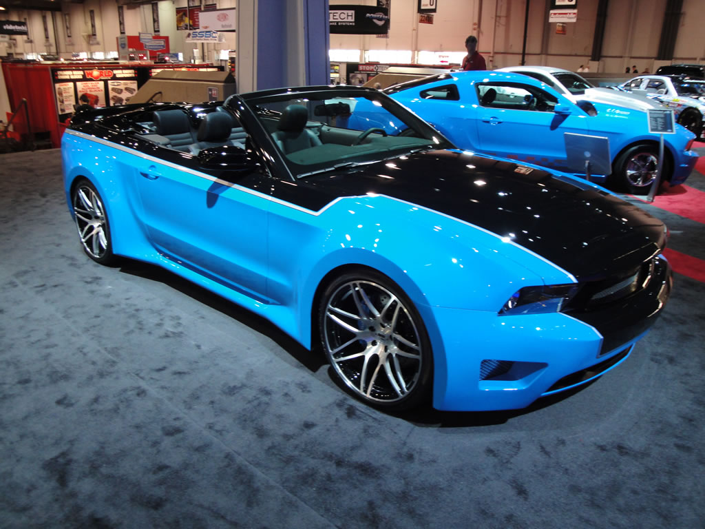 At this years L.A. Auto Show Galpin Auto Sports, the team behind MTV’s Pimp My Ride will be bringing their one-off widebody Mustang creation from the SEMA show along with a dozen other ‘Galpinized’ creations. The Galpin team debuted a transformed 2010 Ford Mustang GT convertible with a GAS hand-crafted, one-of-a-kind wide body kit, a 550 horsepower Ford Racing motor, 20-inch Forgiato wheels and a handsome two-tone black and pearl-grabber blue paint job during the SEMA show in early November. The Mustang was highlighted as one of AutoWeek’s eight rides they would drive home from Las Vegas, if they could.
