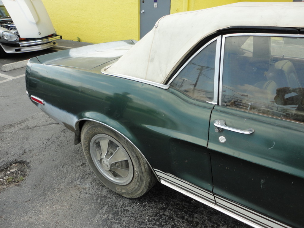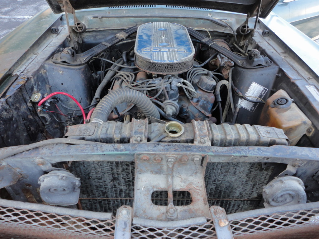 The story goes, a 23-year-old woman traded her 1965 GT350 for the brand new 1968 Shelby GT500 convertible and it was driven for awhile until the big block engine blew. The owner replaced the big block with a less than stellar replacement small block Ford engine. The owner was not happy with the performance of the small block and therefore parked the Shelby GT500 in the garage and never drove it again.The eBay seller still has the original engine and trans which goes with the car. The car was just found two weeks ago and has been pulled out of the garage and cleaned up.