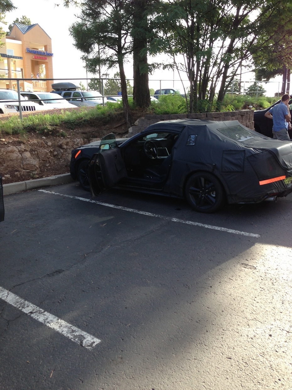Over on the forums of Mustang6g a member spotted a group of 2015 Mustangs in a hotel parking lot. Armed guards were keeping watch over these beauties but one gentlemen was kind enough to open the door for an interior shot. Keep reading to see all the spy shots.