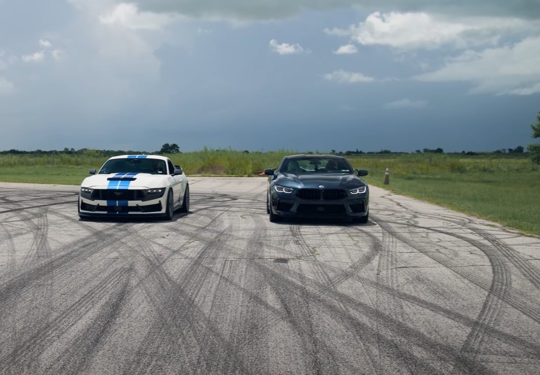Now, we get to see this beast in action as it drag races a BMW M8 Competition at Pennzoil Proving Grounds. The BMW M8 Competition is a twin-turbo V8 powerhouse that makes 617 horsepower and 553 pound-feet of torque.