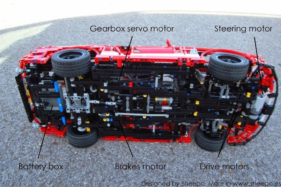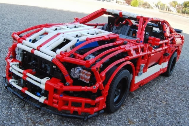 Fernando constructed this GT500 out of 3,500 individual Lego pieces and its totally functional. The car weighs roughly 6.8 lbs. and it uses five servo motors controlled by a remote control for various functions on the vehicle including the transmission, steering, fake engine movement and 4-wheel disc brakes, Yes the brakes work to.