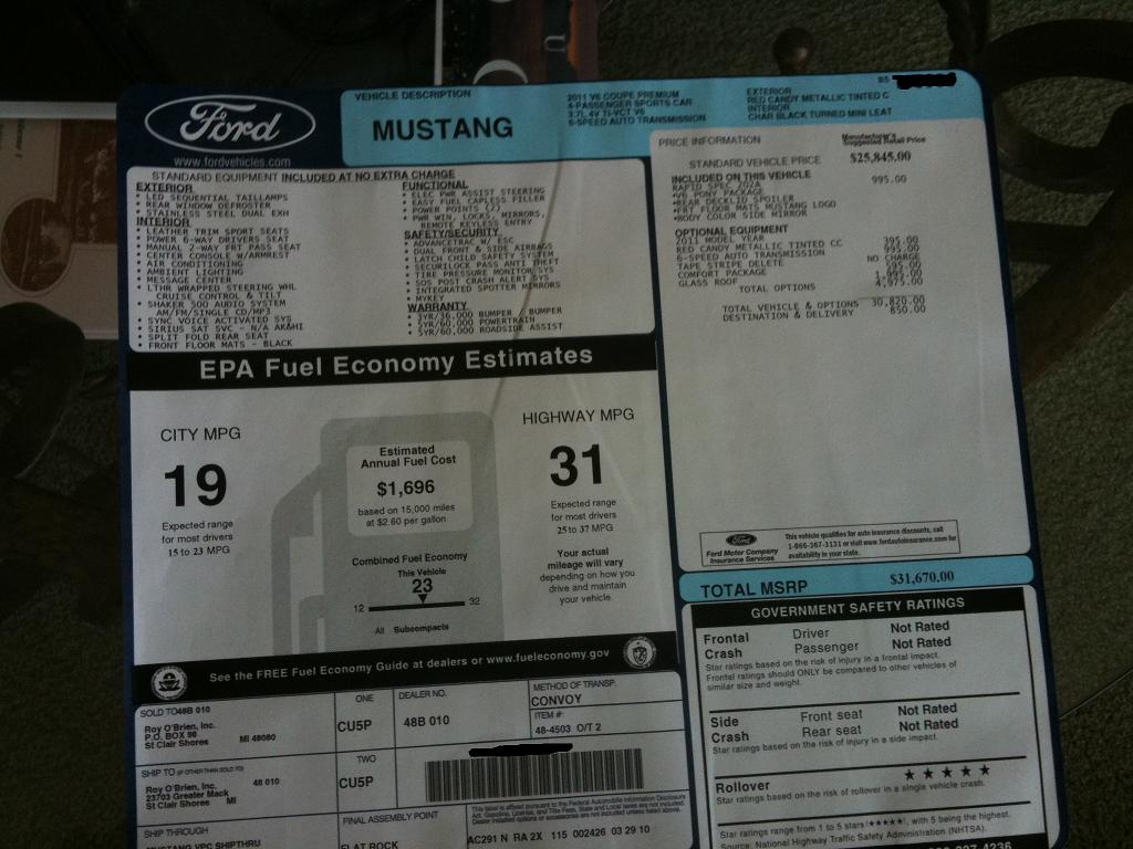 The first to post pictures was a forum member over on TheMustangSource who posted up photos of his Mothers new 2011 V-6. Check out the photos below.