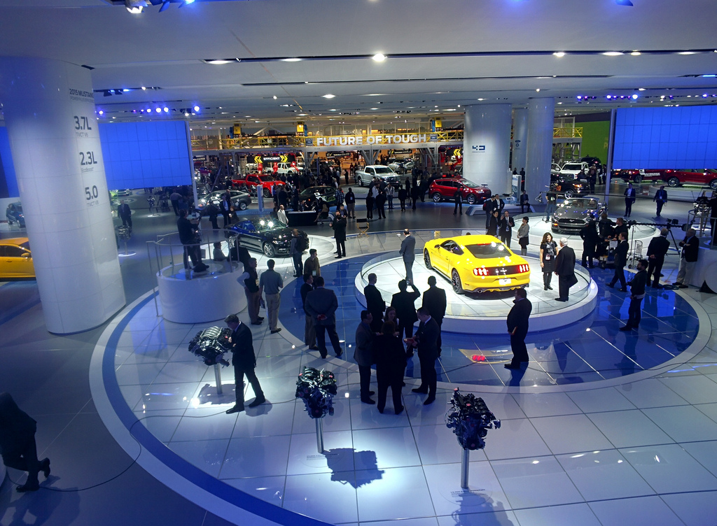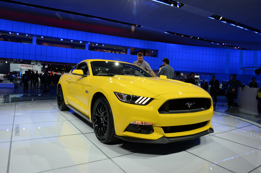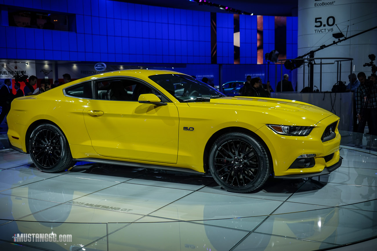All this week the North American International Auto Show (NAIAS) is taking place in Detroit, Michigan with Ford having one of the bigger displays. In the display Ford is prominently featuring an all-new Triple Yellow 2015 Mustang GT 5.0. Along with the yellow Mustang Ford also brought along another GT coupe and convertible in Magnetic Metallic. Keep reading to view the photos.