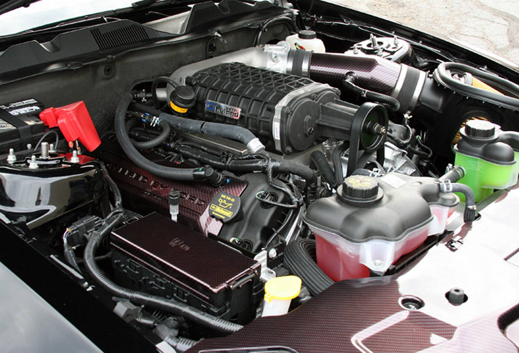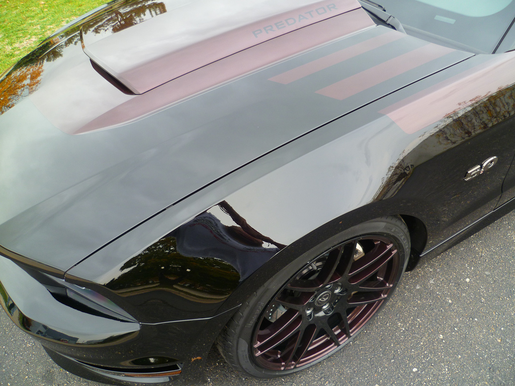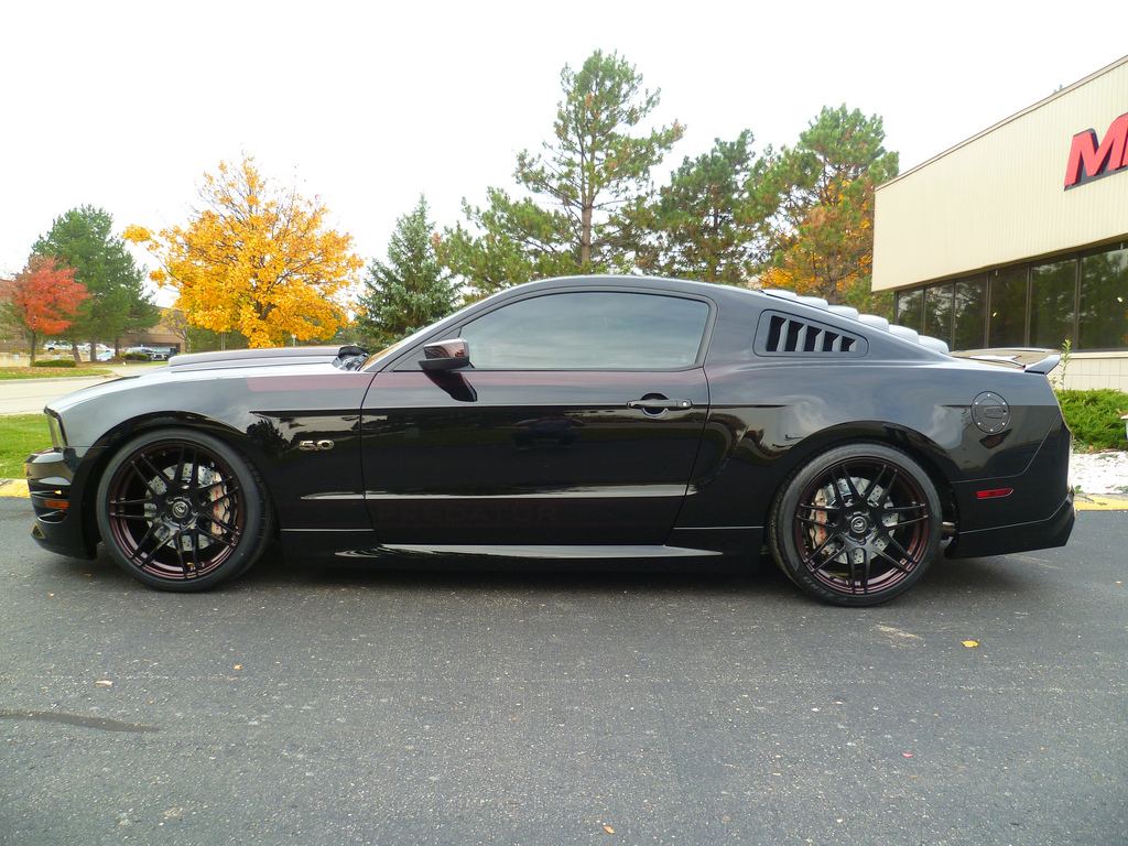 At this years SEMA show Mustang Racing Technology (MRT) will debut the Predator Mustang based off a 2011 Mustang GT. The MRT Predator’s look is highly unique utilizing Sherwin Williams paint with a custom MRT black cherry ghost application and a 3D Carbon body kit. Under the hood is where the Mustang really comes alive with a Sean Hyland twin-screw supercharger mated to the 5.0-liter V-8. No horsepower numbers have been mentioned yet but expect them to be well above the 500 mark. Keeping this Mustang firmly planted will be no small challenge so MRT went with a set of 20-inch Forgestar F14 wheels with Pirelli rubber. For more check out the specs and photos below.