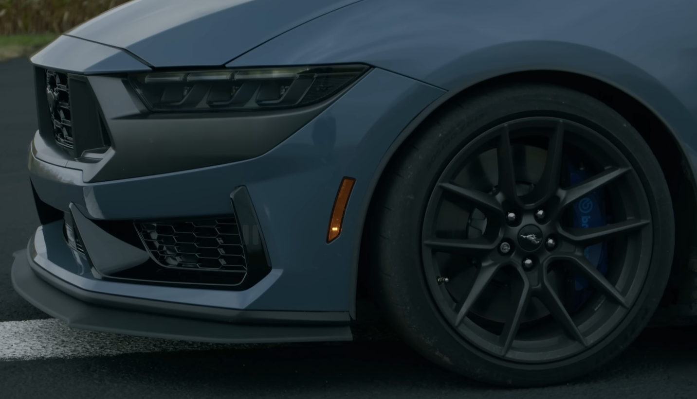 The Dark Horse uses adaptive dampers that adjust instantly to the track surface. This system keeps the car stable even on rough pavement. The suspension includes larger sway barsstronger shocks, and stiffer springs from the optional handling package. Together, these parts reduce body roll and keep the tires planted through corners.
