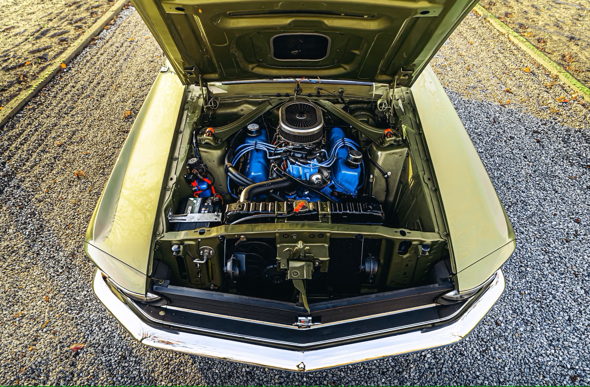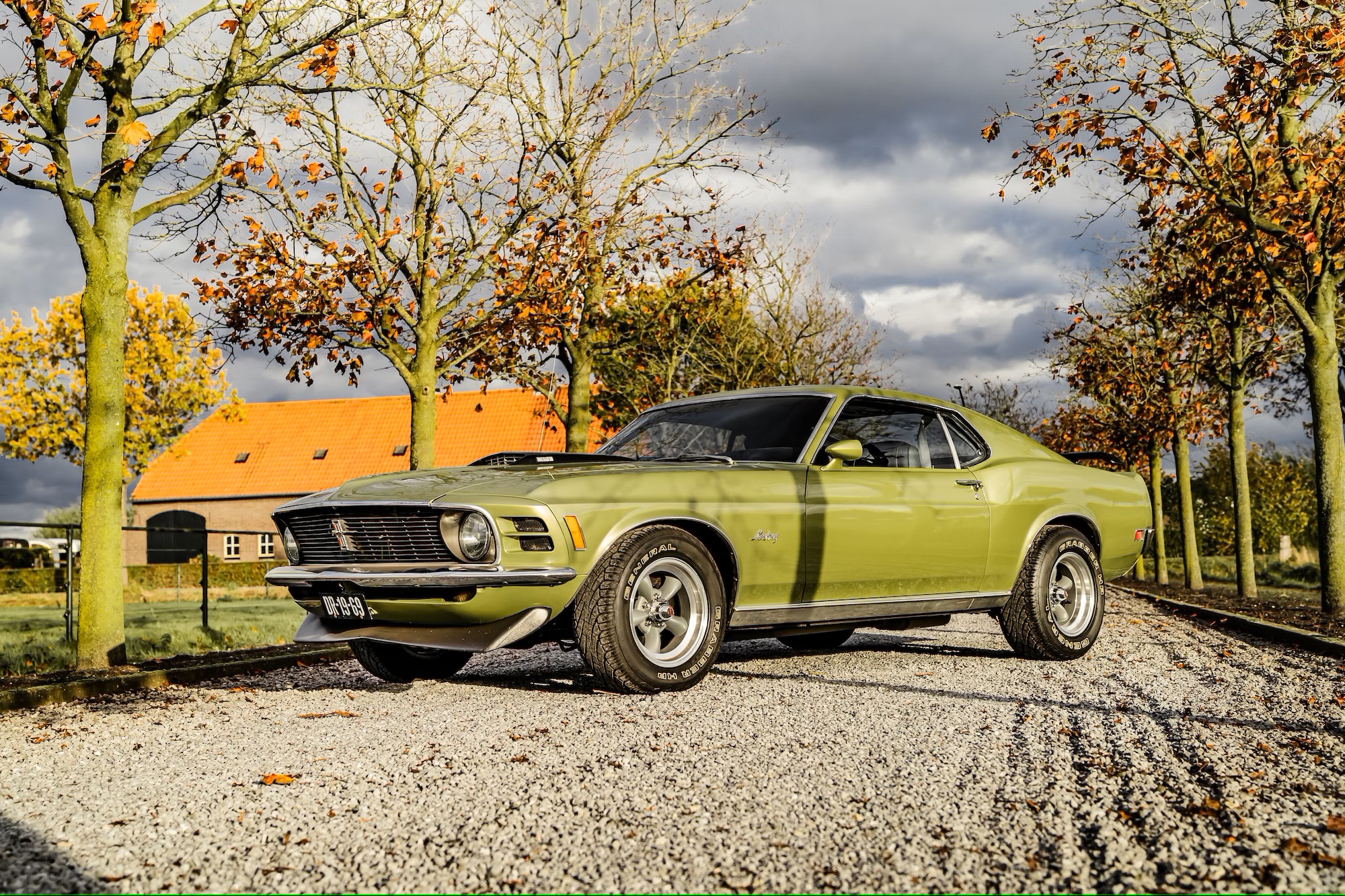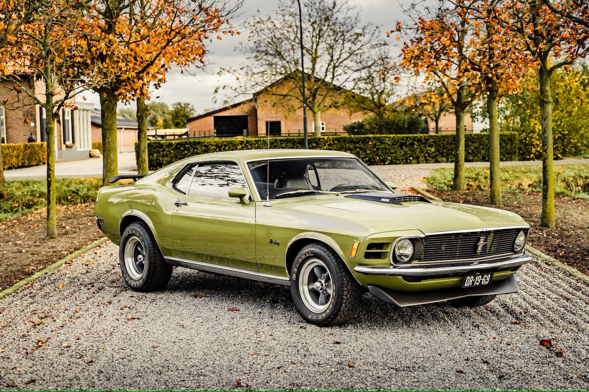 This particular 1970 Mustang comes with several exterior additions inspired by the iconic Mach 1. These include a rear spoiler, a front splitter, and a functional hood scoop, hinting at the power lurking beneath. Under the hood lies a potent 351ci (5.8-liter) Cleveland V8 churning out roughly 355 horsepower.