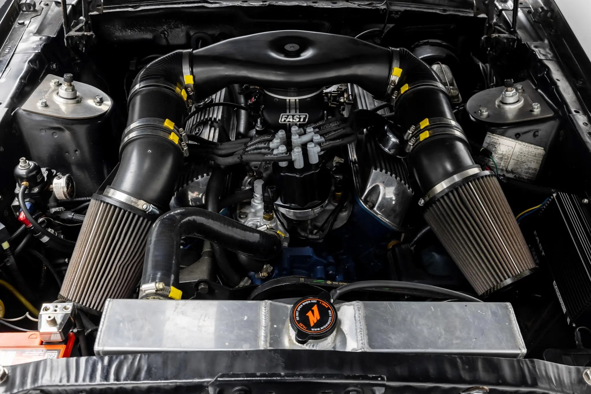 Under the hood, a 302ci V8 engine packs a punch with performance upgrades like a K&N dual air intake, a FAST fuel injection system, and a Mishimoto aluminum radiator. Power is channeled to the rear wheels through a three-speed automatic transmission and a Currie 9″ rear end with a Yukon gear set.
