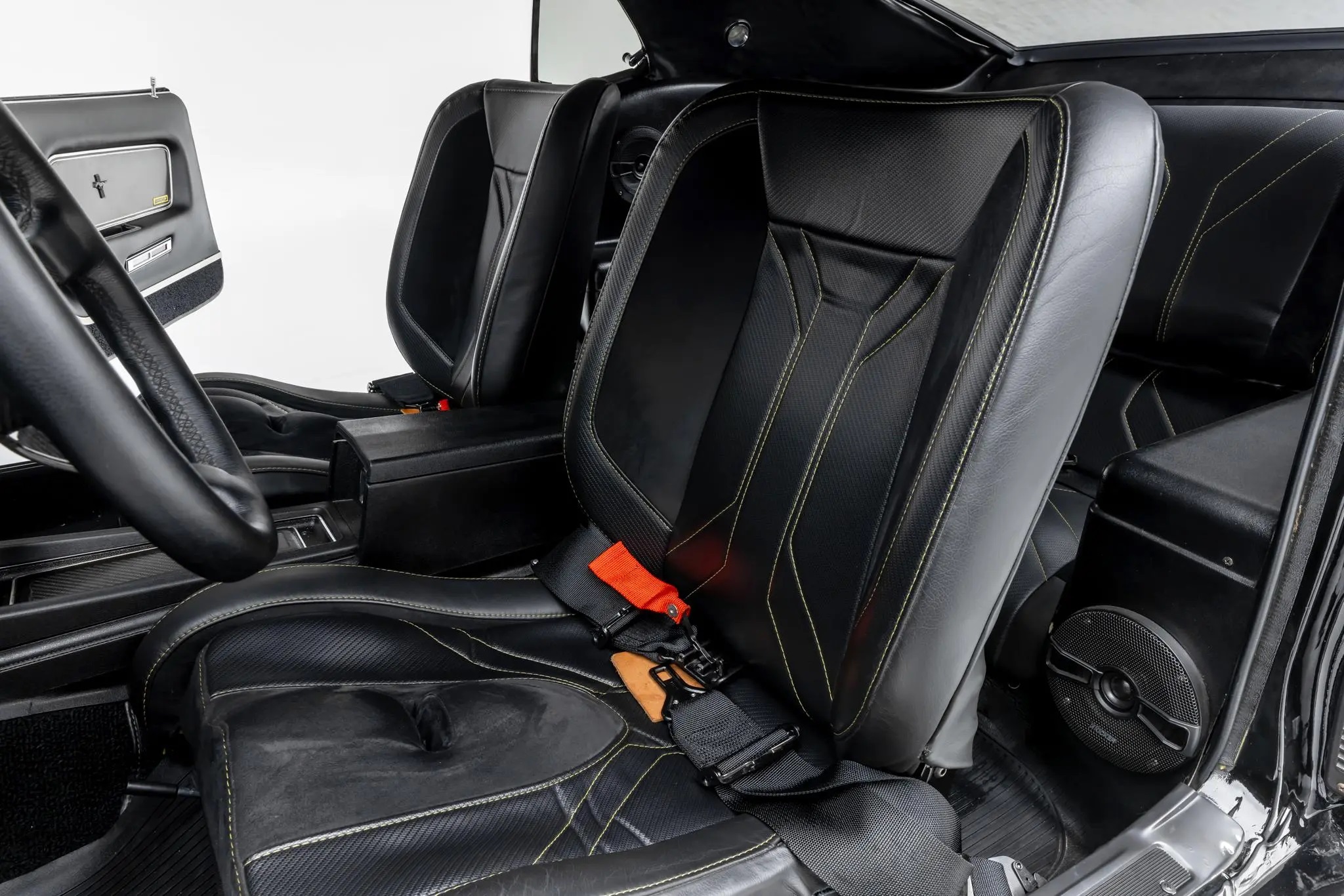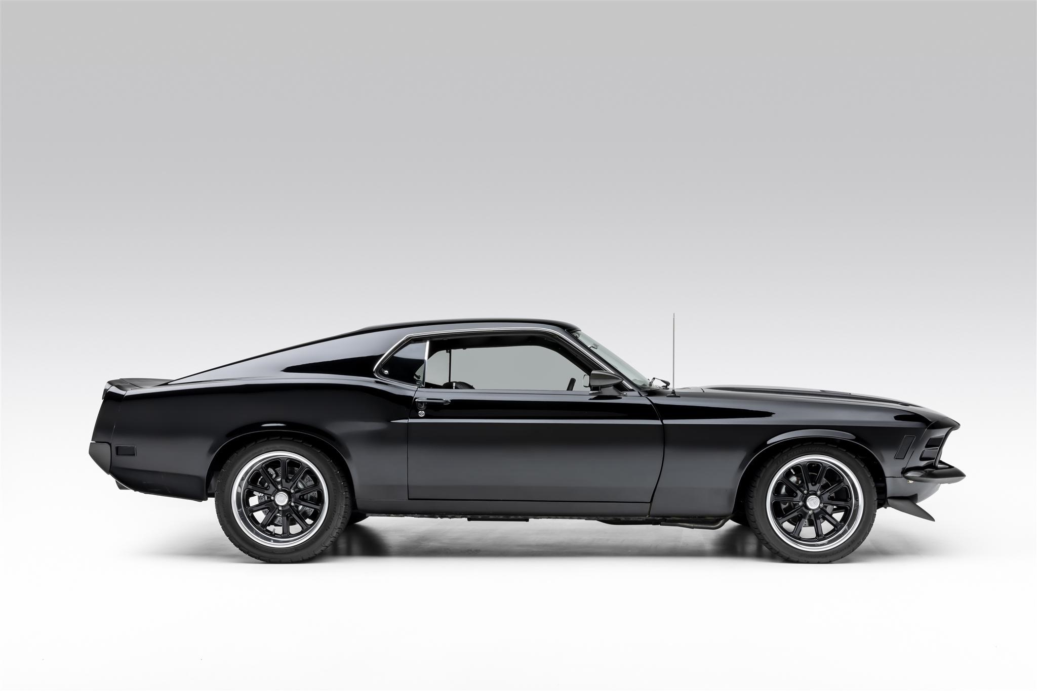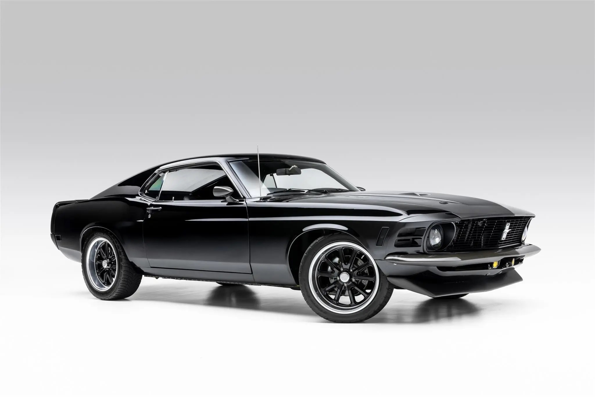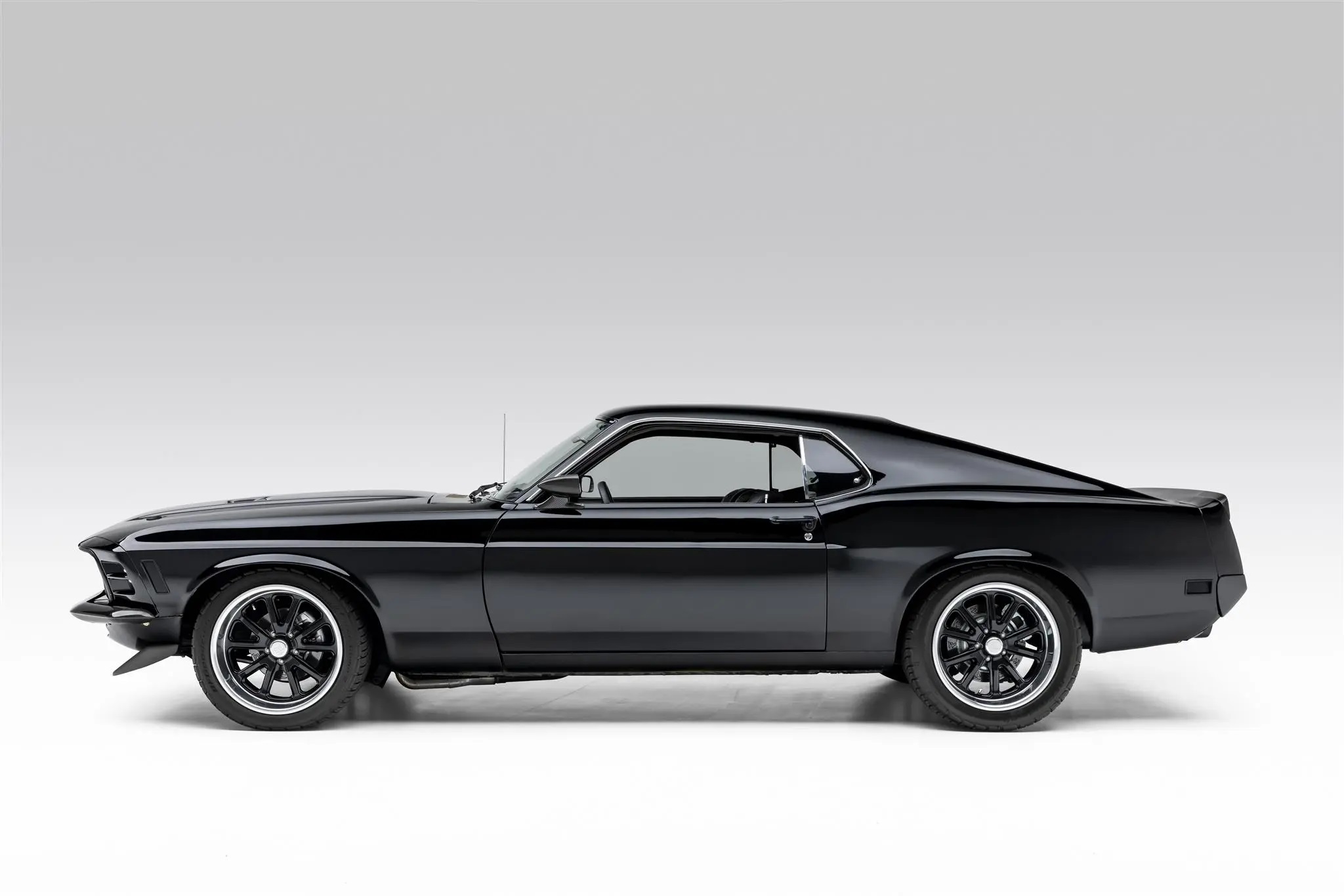 This 1970 Ford Mustang SportsRoof underwent a stunning transformation as part of a Rockstar Energy promotion in 2020. It boasts a head-turning look with lightweight carbon-fiber components for the hood, trunk, and bumpers, along with aggressive LED and Baja Designs exterior lighting.