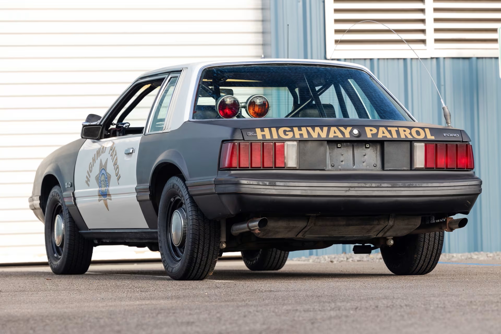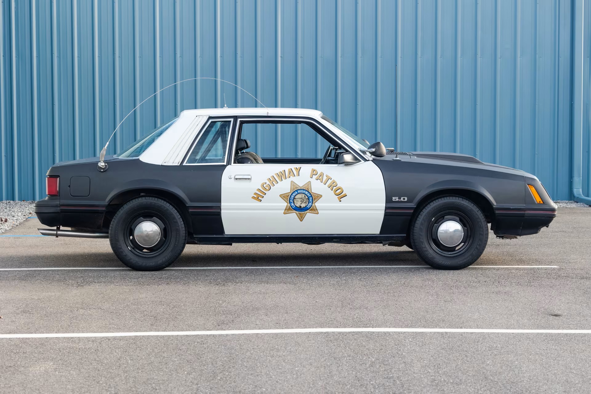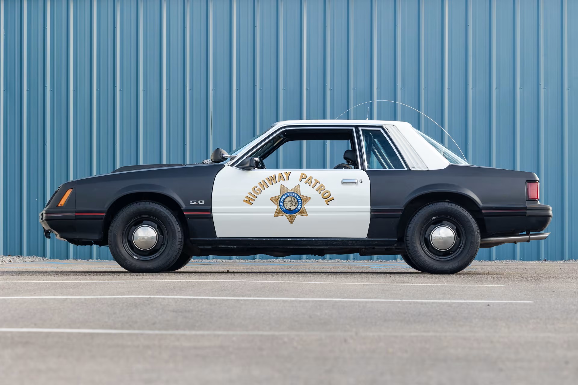 This particular 1982 Mustang SSP is extra special because it was the first used for police training and testing. It was a prototype for the entire fleet of Mustang SSPs the CHP bought. This car has a unique feature: its antenna is on the passenger side, unlike other CHP Mustangs.
