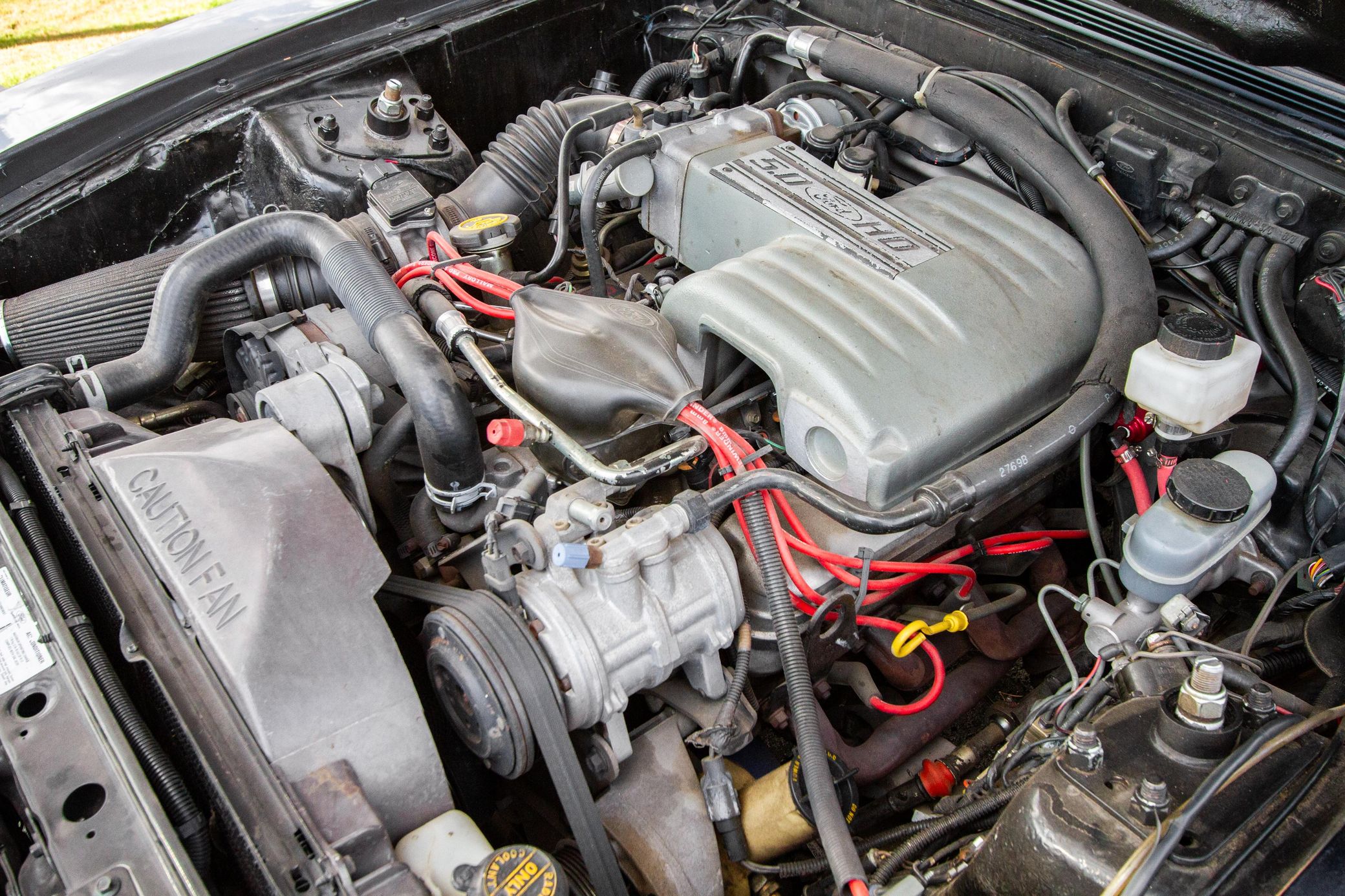 Built on a reinforced 3rd gen Foxbody Mustang frame, the Python featured a shortened wheelbase for improved weight distribution. It used Mustang components, including its interior, a 5.0-liter V8 engine producing 225 horsepower and 300 lb-ft of torque, and the drivetrain, along with additional parts sourced from other Ford models.