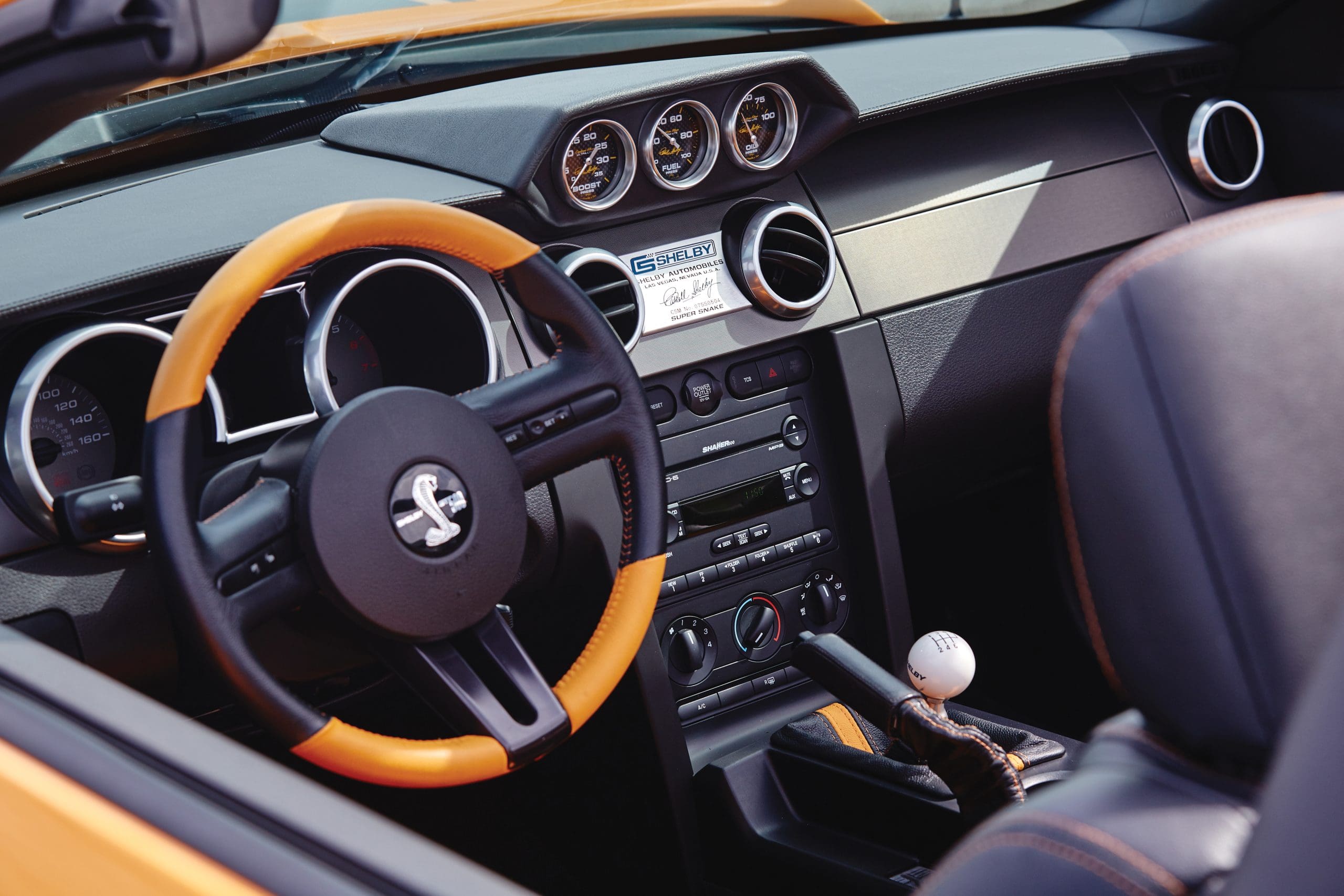 The Super Snake’s staggering output was directed through a six-speed manual transmission, which featured a Ford short-throw shifter, a 3 ½-inch driveshaft, and a set of 3.73 gears. This setup proved to be extremely efficient, as the Super Snake recorded ¼ mile times of only 10.87 seconds, with a top speed of 134 MPH.