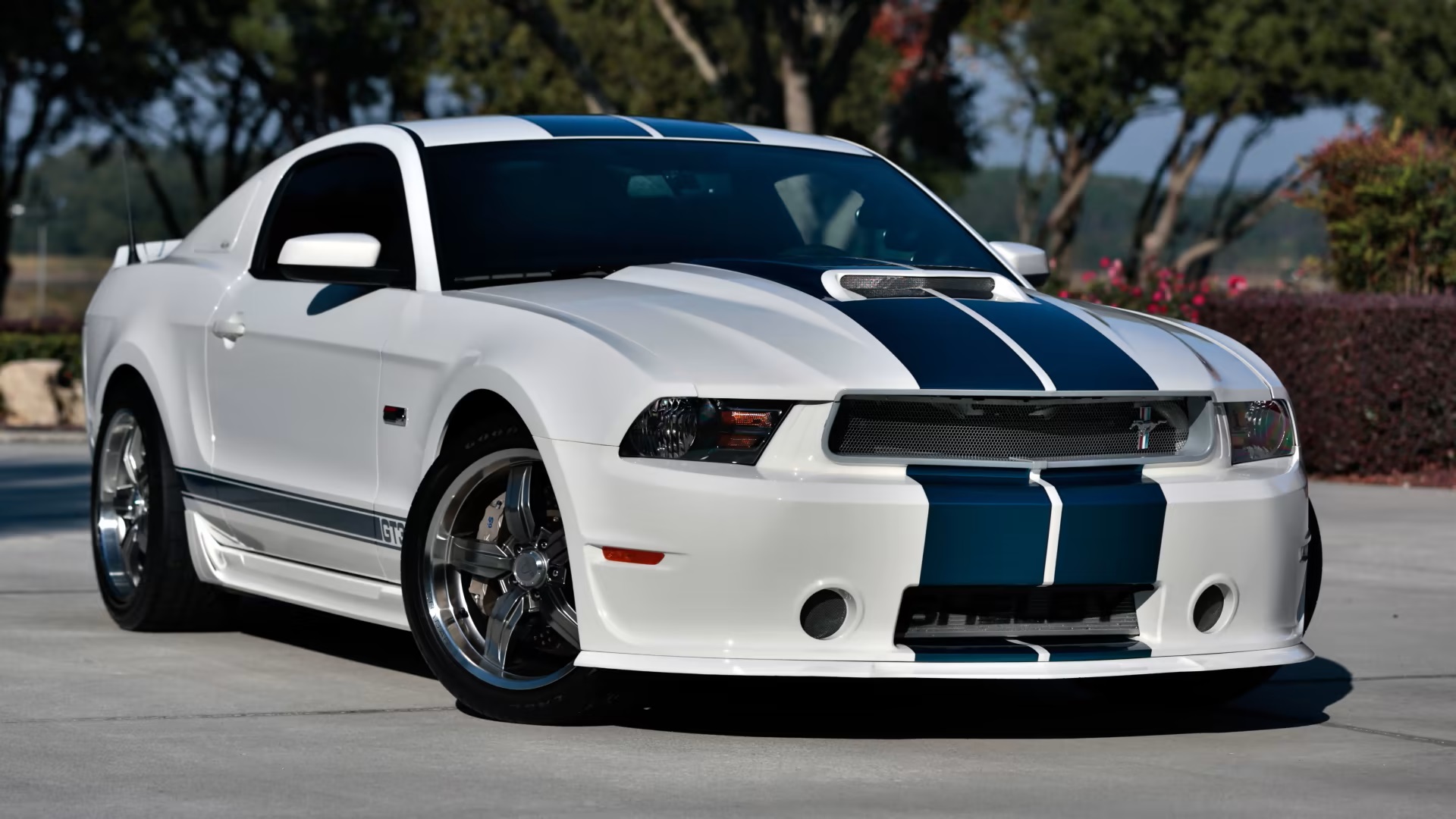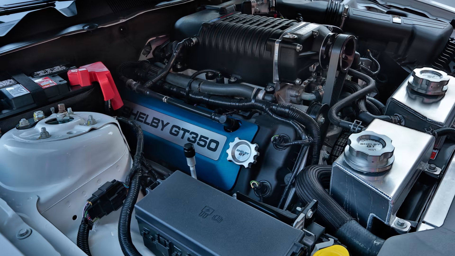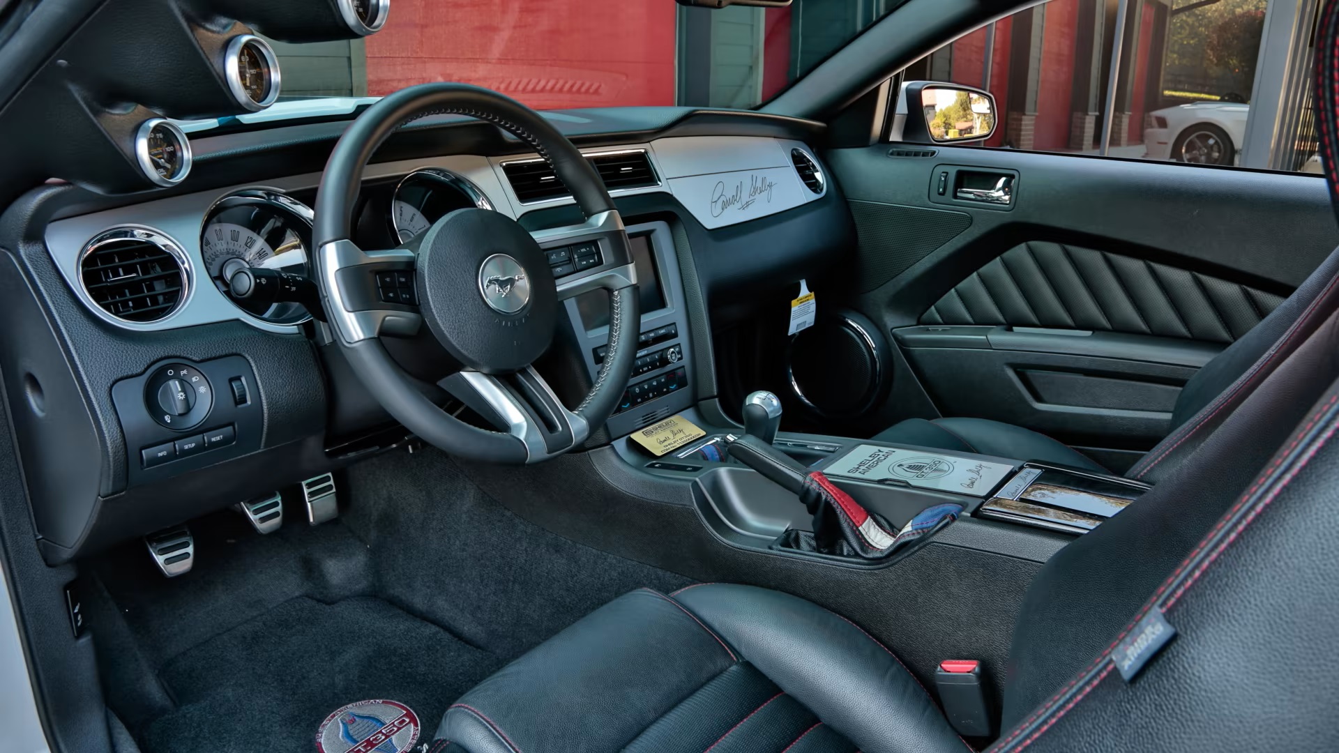 Adhering to the classic GT350 formula, the vehicle featured a white exterior with Guardsman Blue stripes and a retro-inspired aesthetic. A custom-designed front fascia, scooped hood, side rocker panels, and rear fascia complemented the car’s distinct appearance. The black interior, adorned with red piping and Carroll Shelby’s signature, maintained the classic Shelby aesthetic.