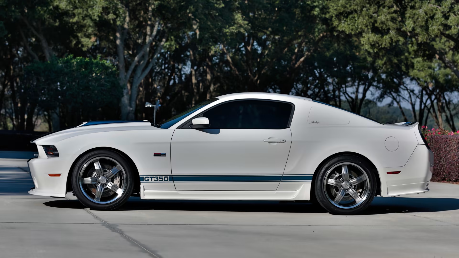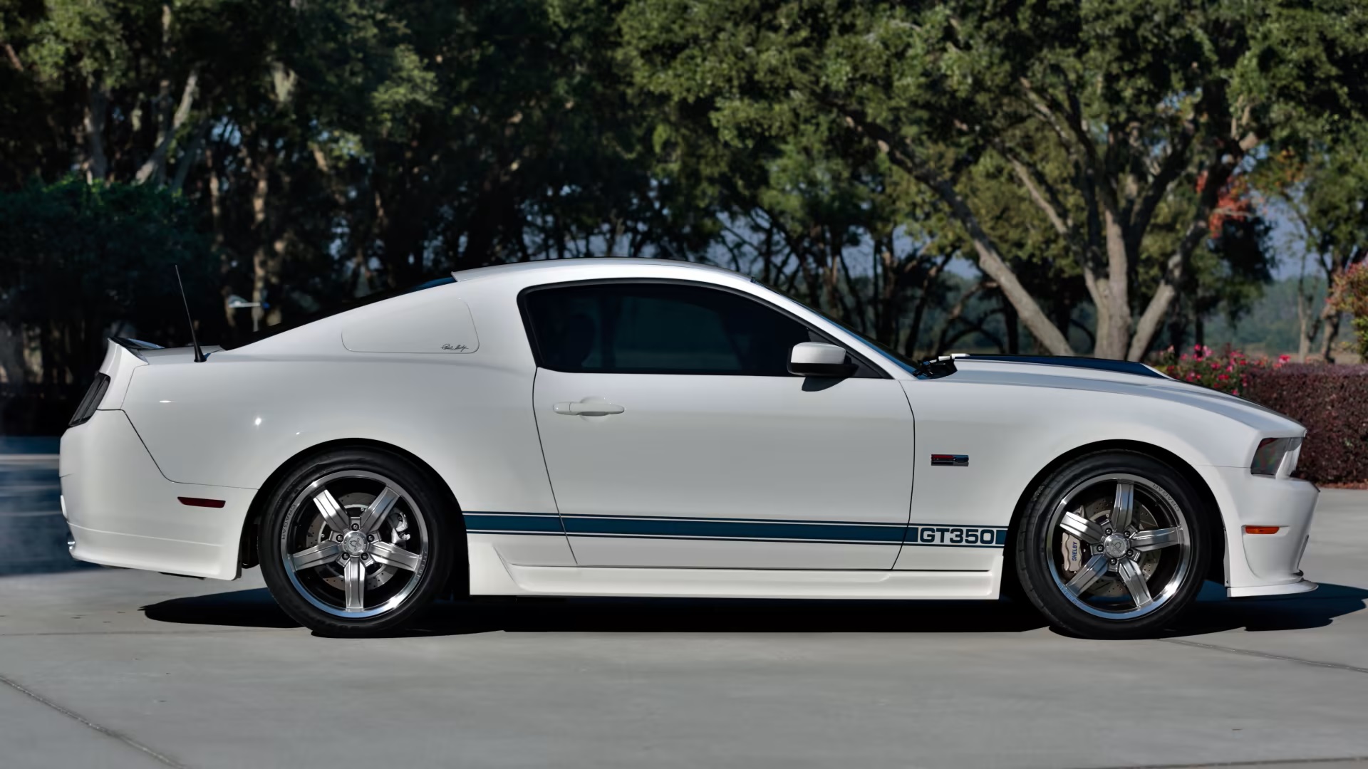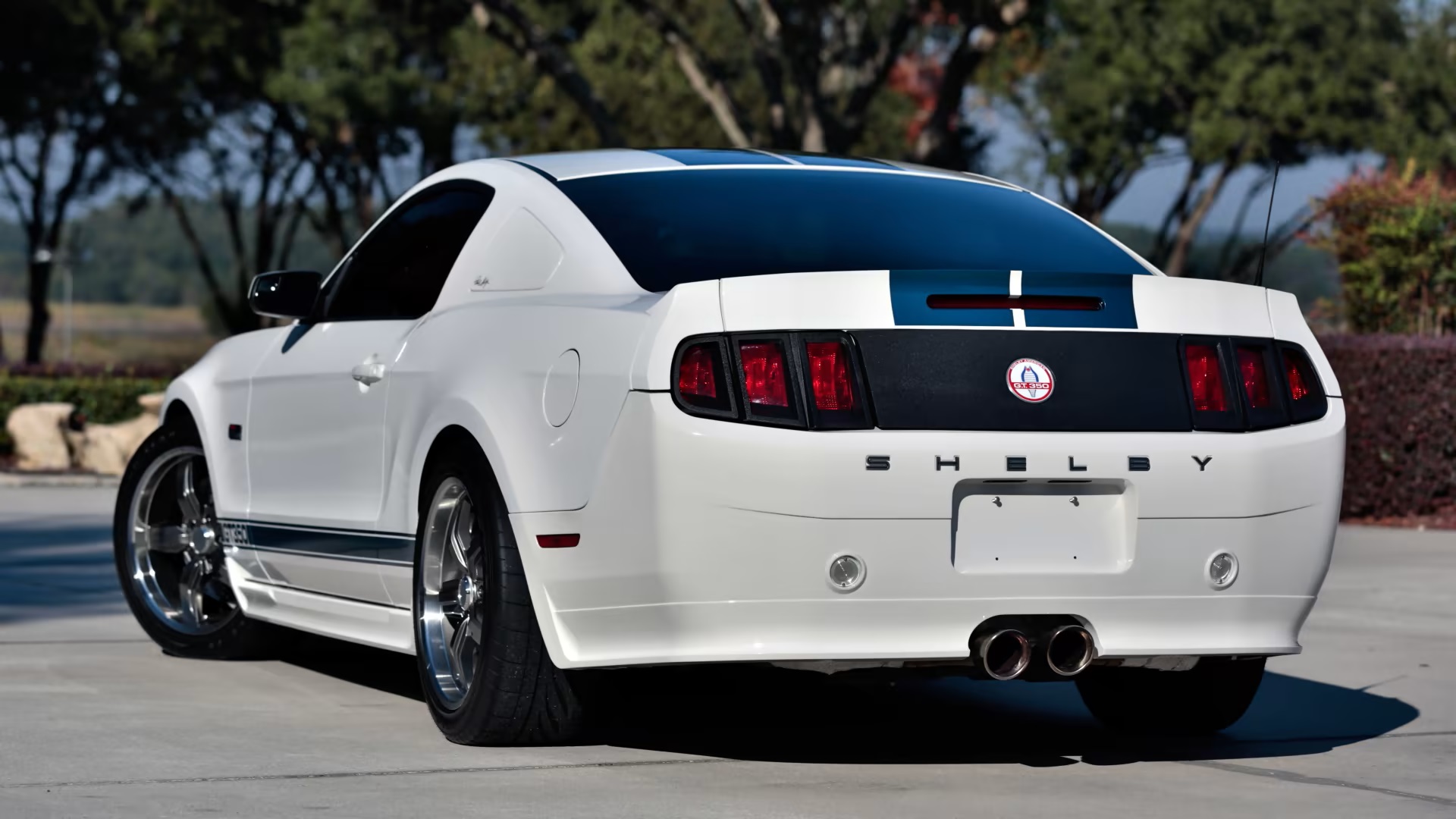 Adhering to the classic GT350 formula, the vehicle featured a white exterior with Guardsman Blue stripes and a retro-inspired aesthetic. A custom-designed front fascia, scooped hood, side rocker panels, and rear fascia complemented the car’s distinct appearance. The black interior, adorned with red piping and Carroll Shelby’s signature, maintained the classic Shelby aesthetic.