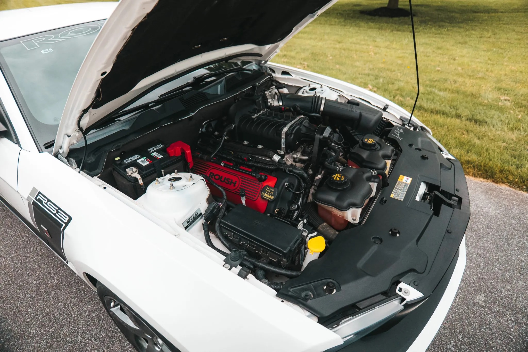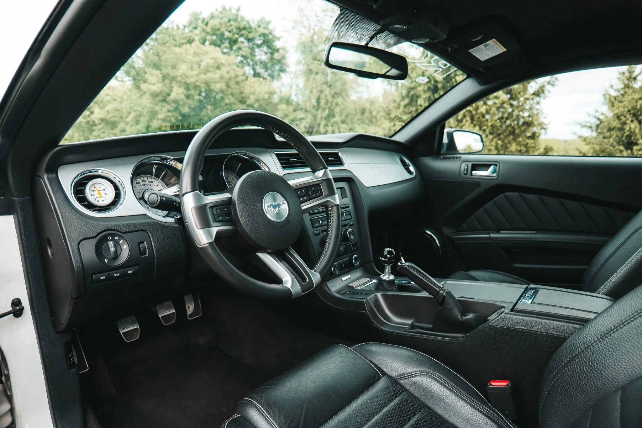 Under the hood, the 5.0-liter Coyote V8 is enhanced with a Roush 2300 ROUSHcharger, delivering a Roush-rated 540 horsepower and 465 lb-ft of torque. This power is sent to the rear wheels via a six-speed manual transmission and a 3.73:1 limited-slip differential.
