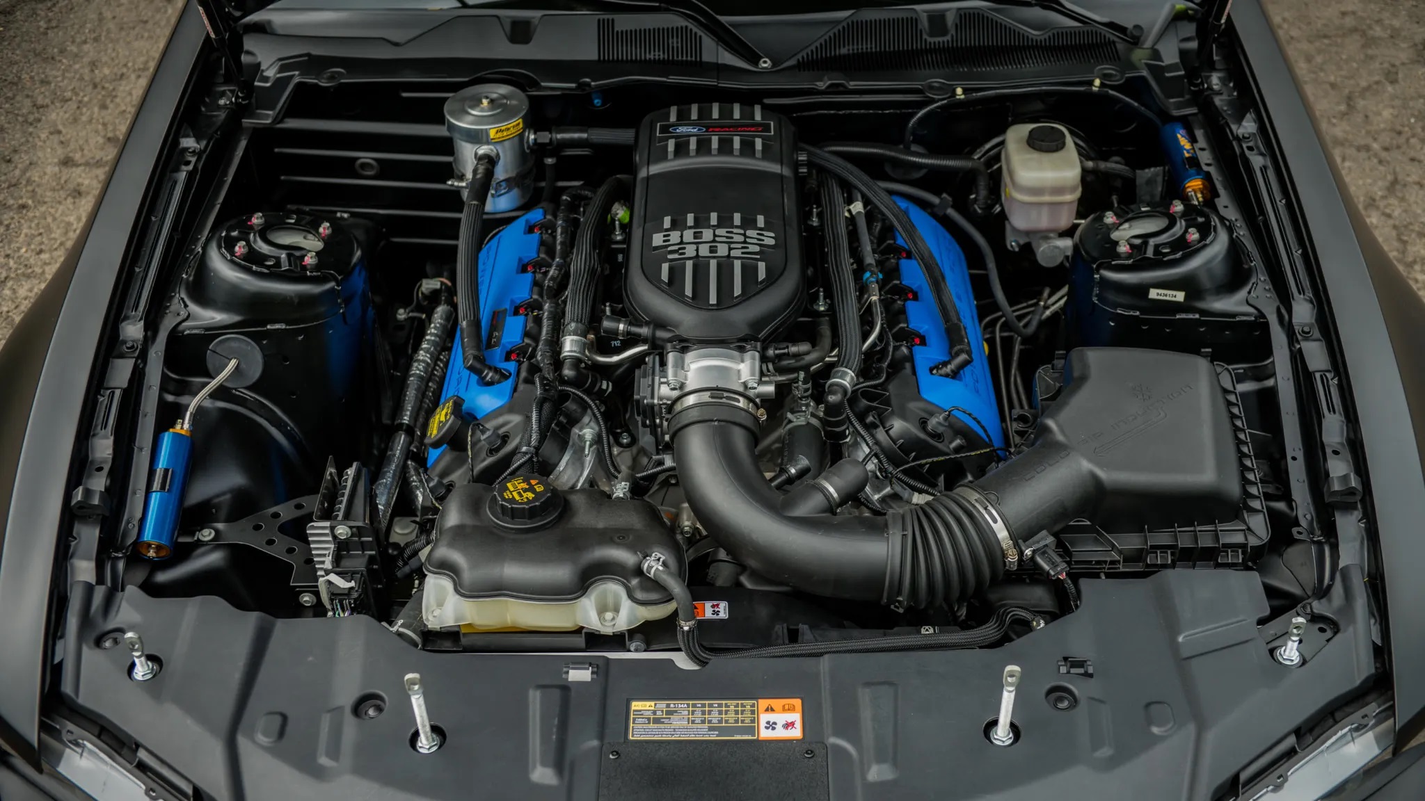 Under the hood, the Boss 302S boasted a race-tuned 5.0-liter Boss 302 engine paired with a T-6060 6-speed transmission and a Torsen TR2 differential. Suspension enhancements included 3-way adjustable dampers and Ford Racing sway bars, among others.