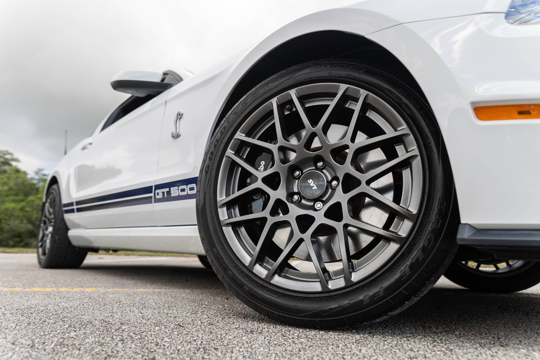 Gripping the road were staggered high-performance Goodyear Eagle F1 SuperCar tires: 285/35ZR-20 in the rear and 265/40ZR-19 in the front. These wrapped around upgraded alloy wheels included in the SVT Performance Package. Behind the spokes, you’d see the immense stopping power provided by 15-inch Brembo brakes with 6-piston calipers up front and 13.8-inch rotors with single-piston calipers at the rear.