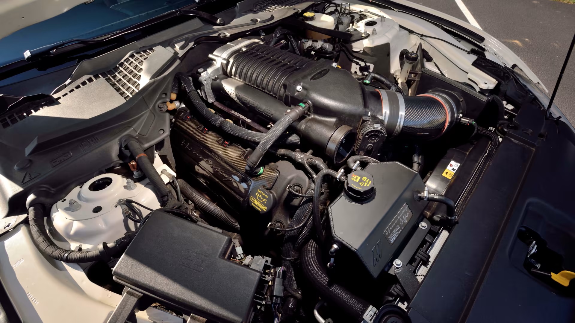Tuned to produce 800 HP at 7,000 RPM, the car delivers impressive performance. It features carbon fiber components for improved aerodynamics, including a front splitter, hood vent heat extractors, side sills, and rear spoiler.