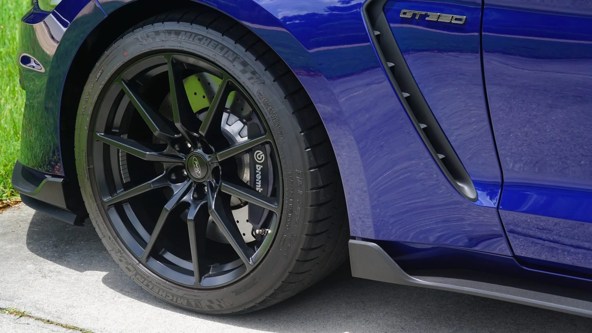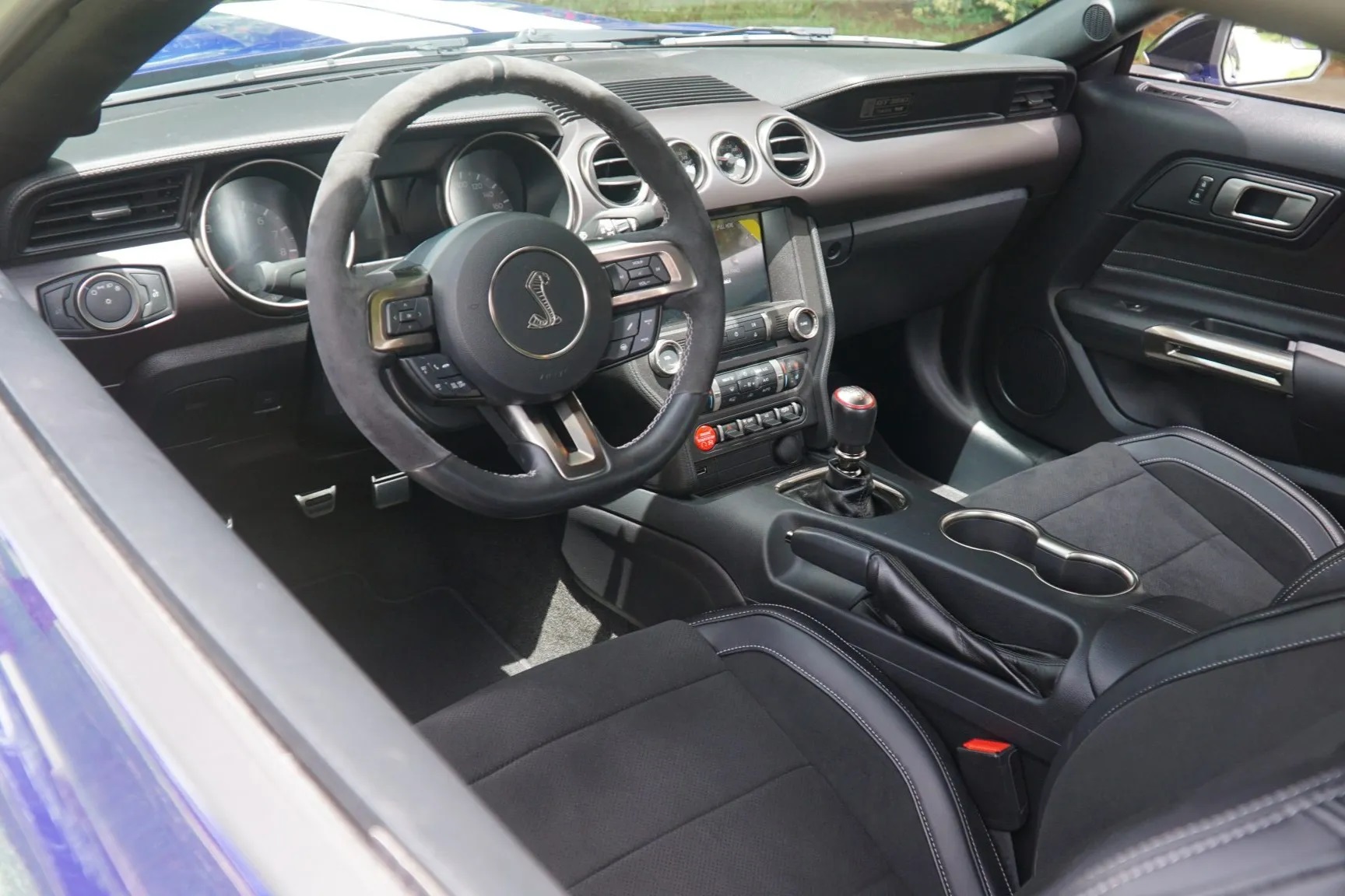Under the hood, it boasts a 5.2L V8 engine with a flat-plane crankshaft, delivering 526 horsepower and 429 lb-ft of torque, paired with a 6-speed manual transmission. The GT350’s performance is further enhanced by its independent suspension, MagnaRide dampers, Brembo brakes, and Michelin Pilot Super Sport tires.