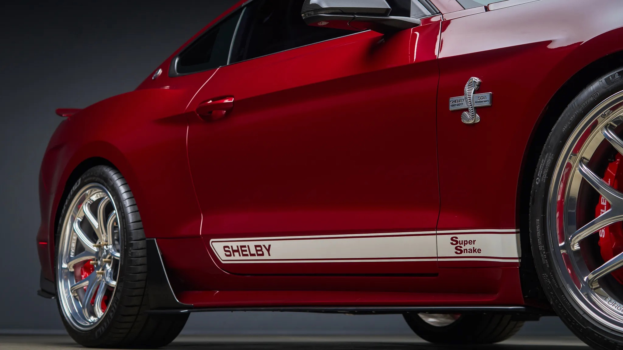 The 2017 Super Snake also received upgrades to the GT’s steering and suspension, including Ford Performance’s track handling package, along with Wilwood brakes featuring 6-piston front and 4-piston rear calipers.