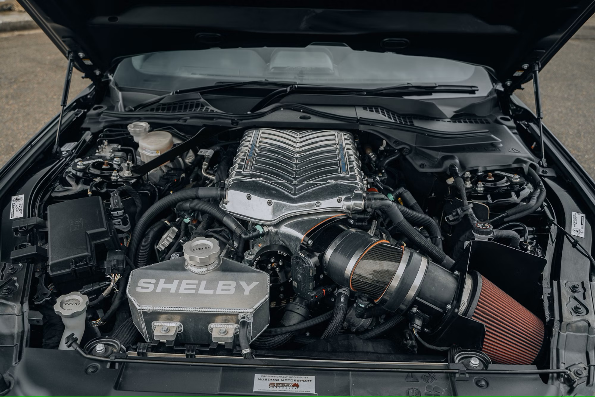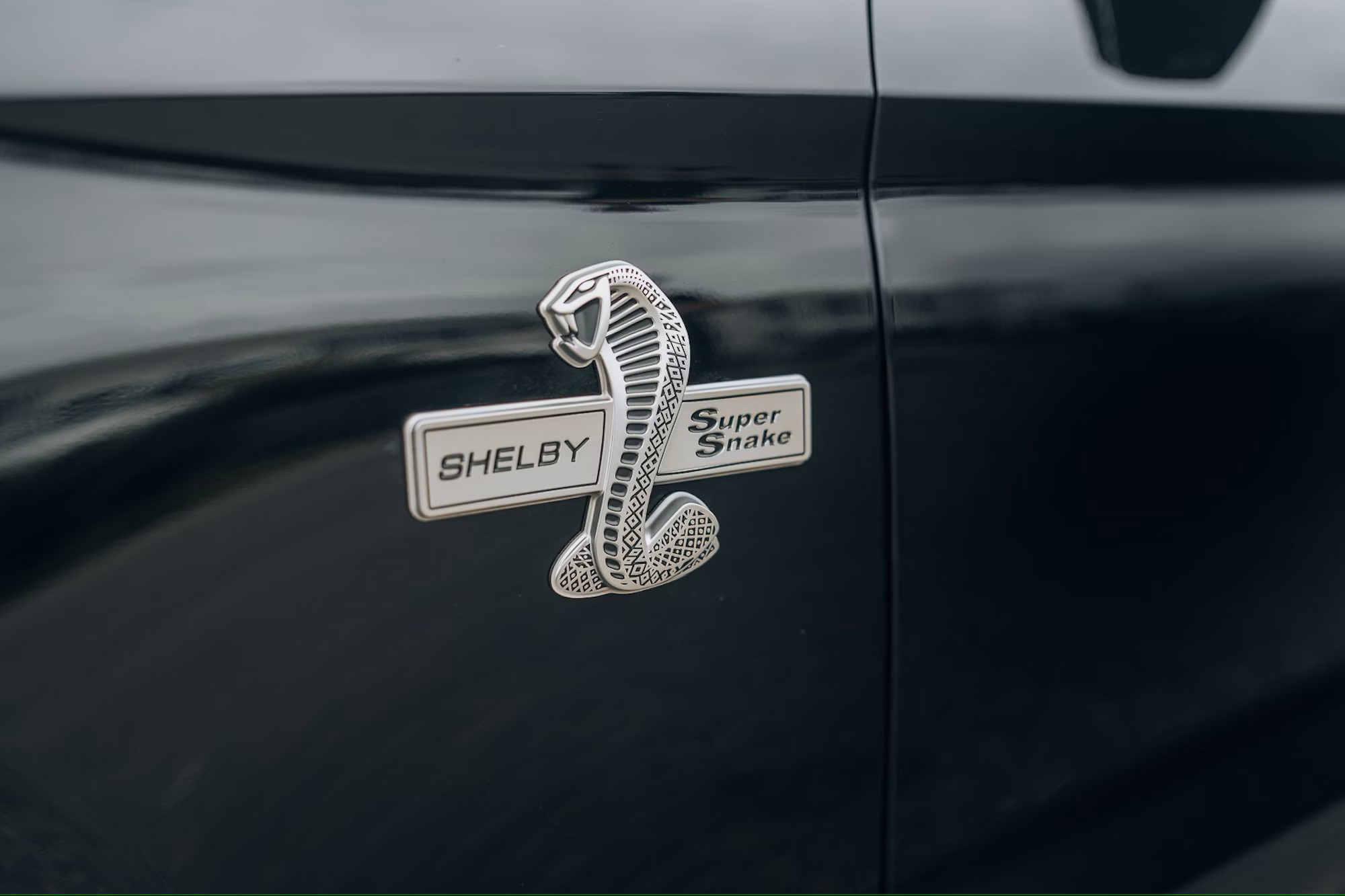 Cosmetically, the Super Snake was a beast. A custom body kit with fascias, hood, grille, and spoilers transformed the look. Shelby badges adorned the car, leaving no doubt about its pedigree. The interior got the Shelby treatment as well. Signature floor mats and door sills greeted passengers, while Katzkin leather with Shelby stitching and A-pillar gauges provided a driver-focused environment.