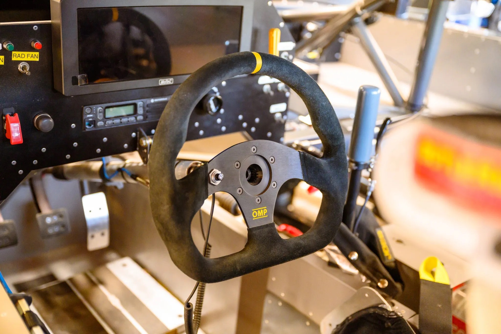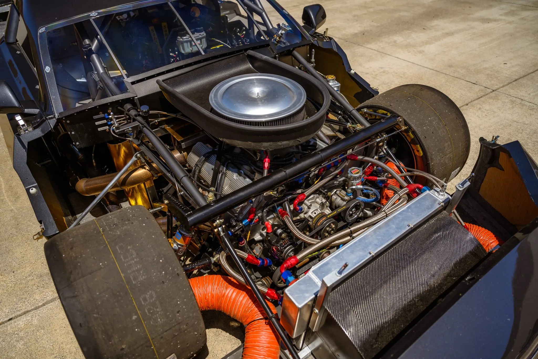 Inside the race-ready cabin, you’ll find a roll cage, fire suppression system, OMP steering wheel, Motec digital display, Butlerbuilt racing seat, Motorola radio, and multiple cameras for enhanced visibility.