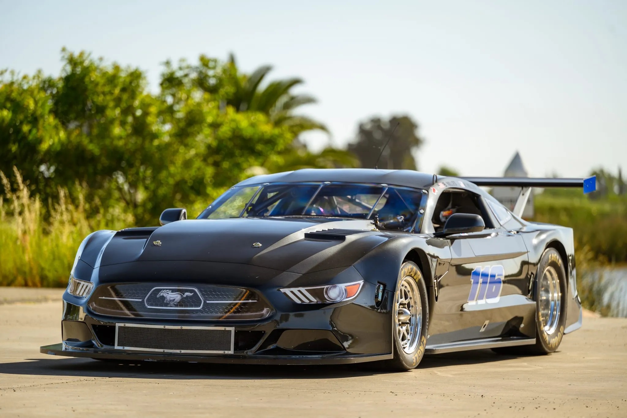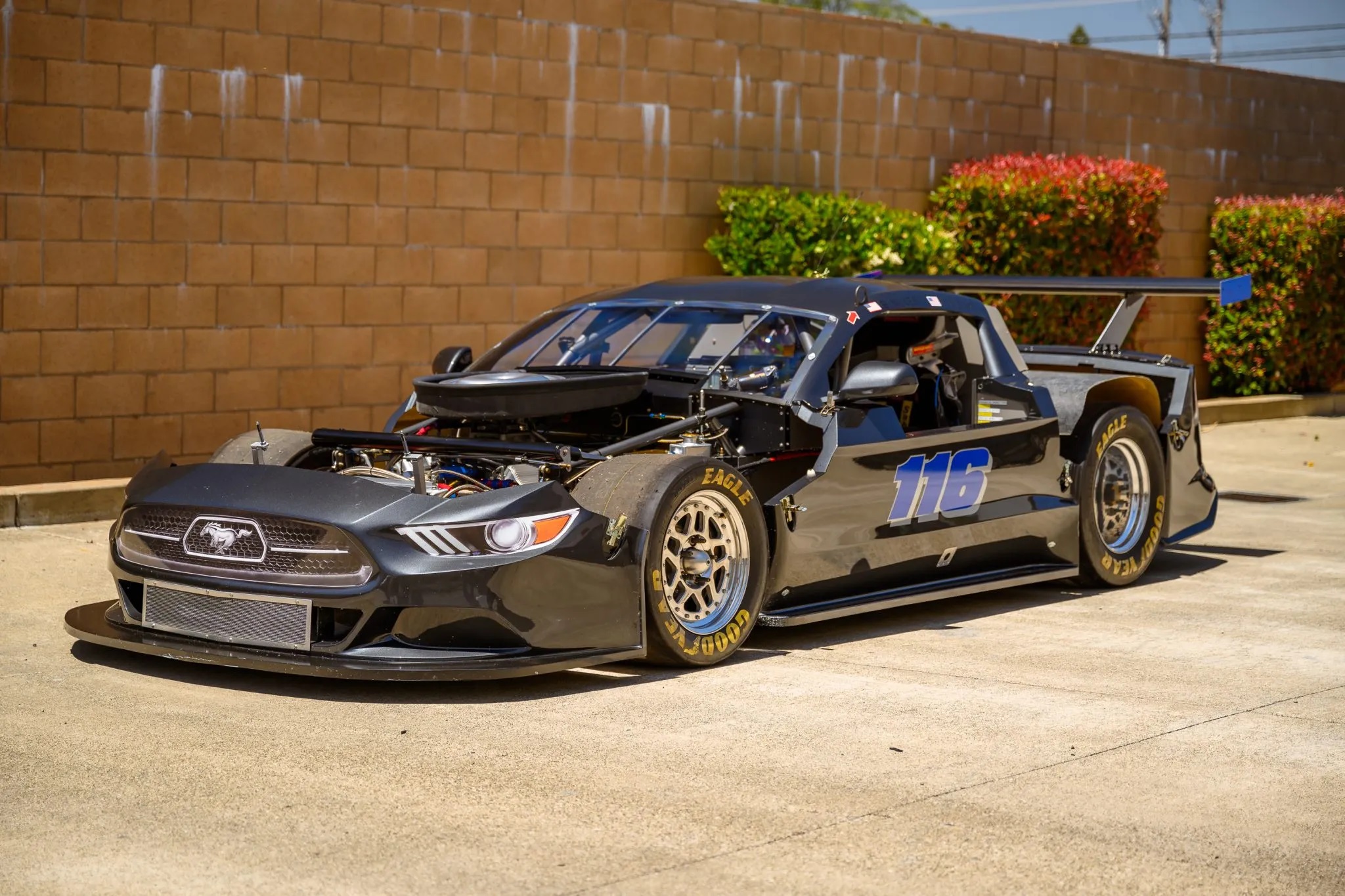 This Ford Mustang was custom-built for Steve Burns, the founder of VP Racing Fuels, by BC Race Cars in Ontario, Canada. Designed for Trans Am competition, the car features a carbon-fiber body attached to a tubular steel chassis and is powered by a Roush-Yates 358ci V8 engine paired with an EMCO Gears EG5S five-speed sequential manual transmission.