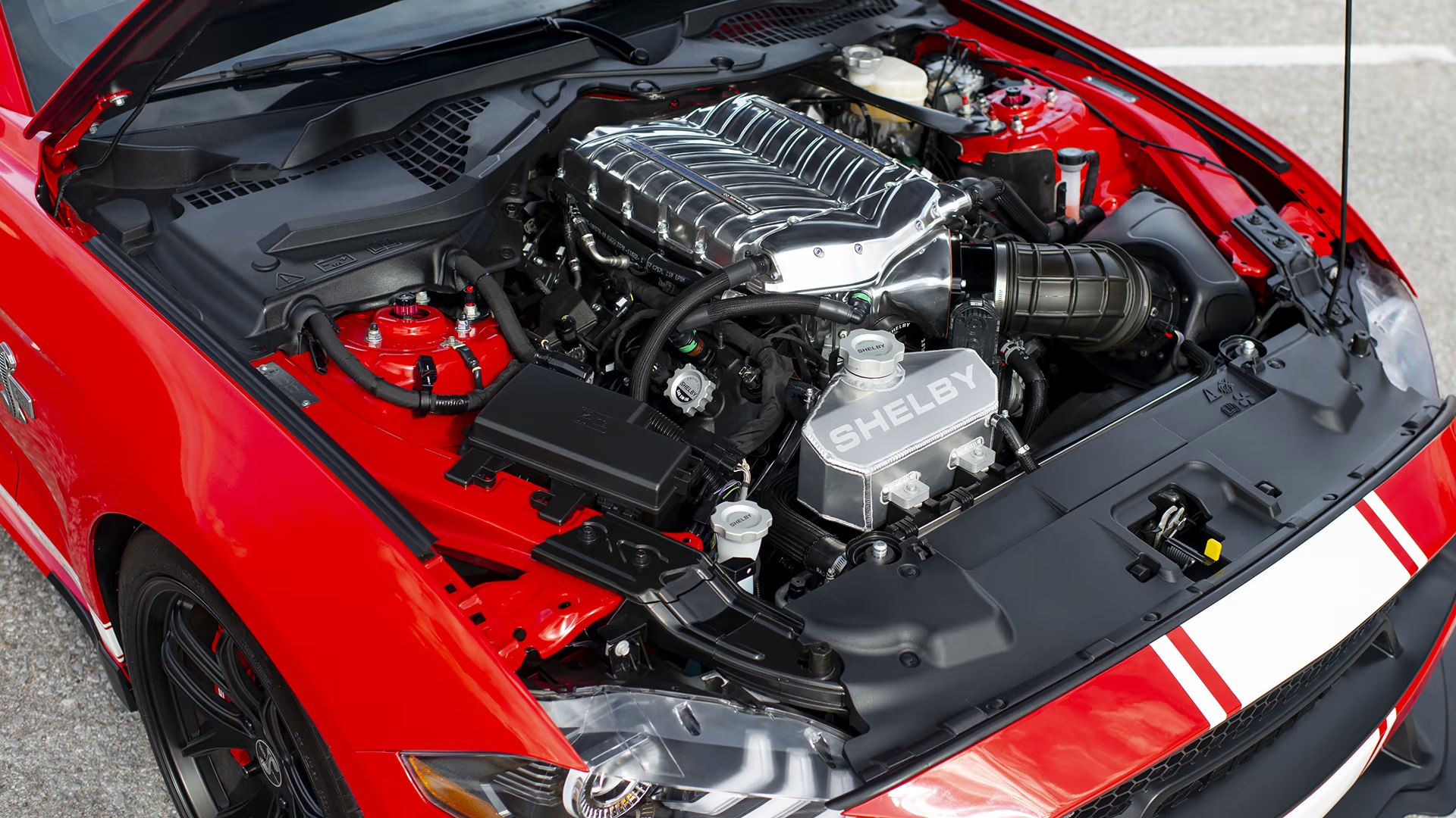 The Super Snake offered two output options: a standard 710 horsepower with a Ford Performance supercharger, or an optional 800-plus horsepower with a larger Whipple supercharger. Both versions included an upgraded cooling system with a custom radiator and high-flow heat exchanger, along with a Ford Performance exhaust kit.