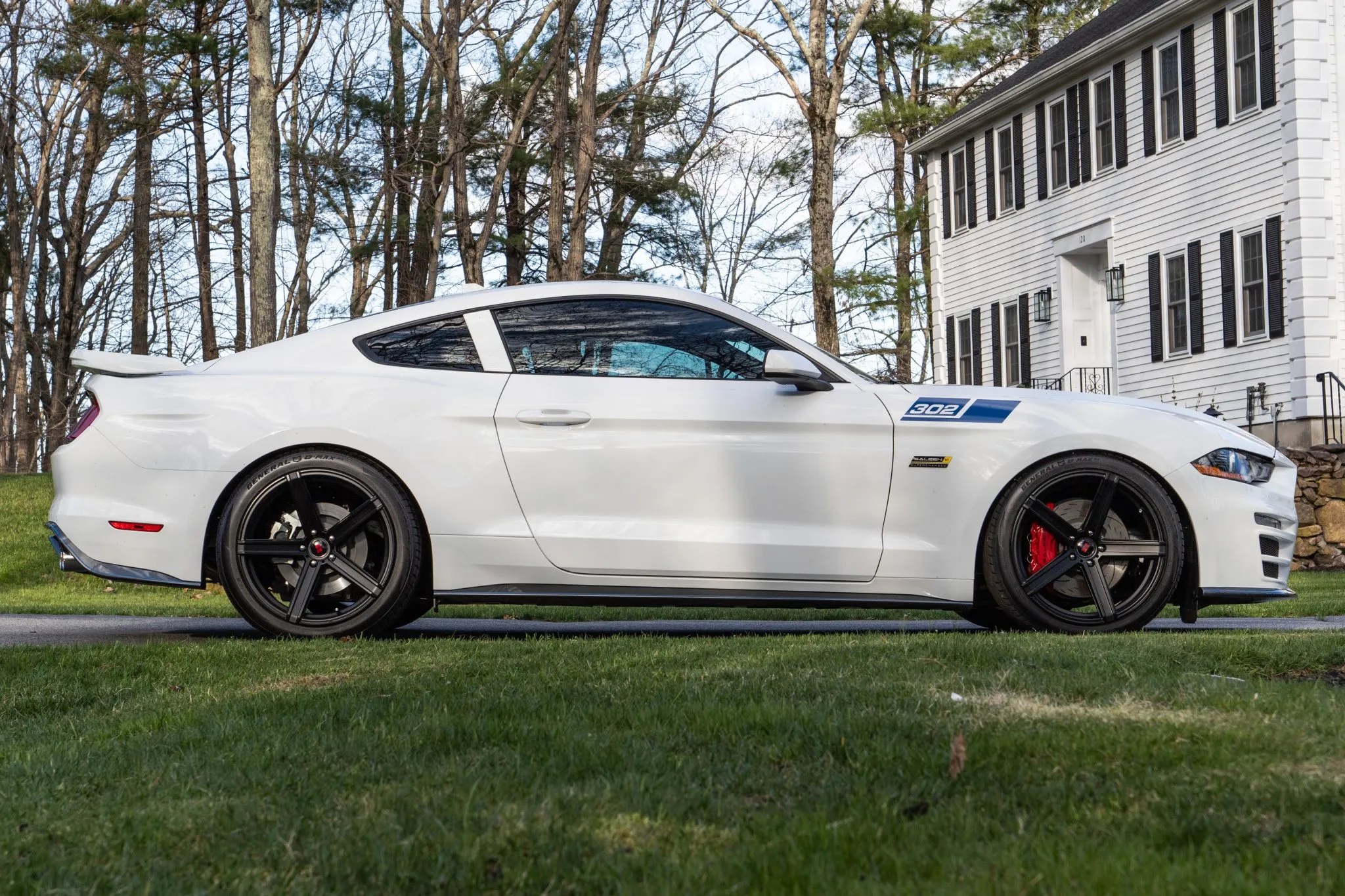 The S302 Yellow Label boasted a substantial power increase over the standard Mustang GT, along with enhancements to suspension and brake systems. It also featured distinctive styling elements, including a Saleen-specific front fascia, grille, tail panel, rear wing, windshield banner, and badging. Additionally, it sported Heritage Blue “026” and “302” decals denoting the production number and model.