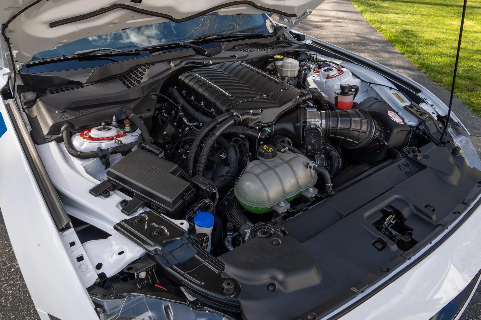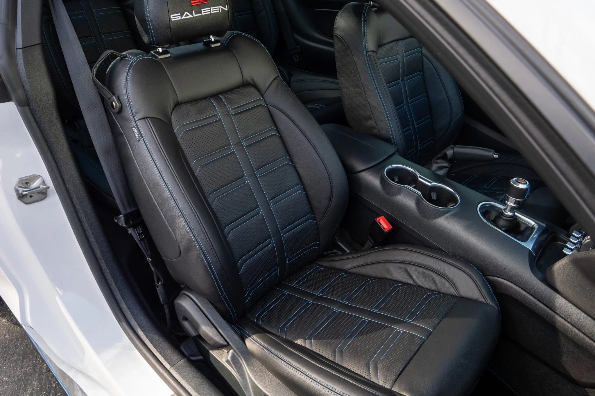 Saleen’s modifications to the 5.0-liter Coyote V8 engine included a twin-screw supercharger, dual intercoolers, a high-volume intercooler water pump, an oil cooler, 47-lb fuel injectors, and a PowerFlash engine calibration. Saleen rated the output at an impressive 745 horsepower and 610 lb-ft of torque.