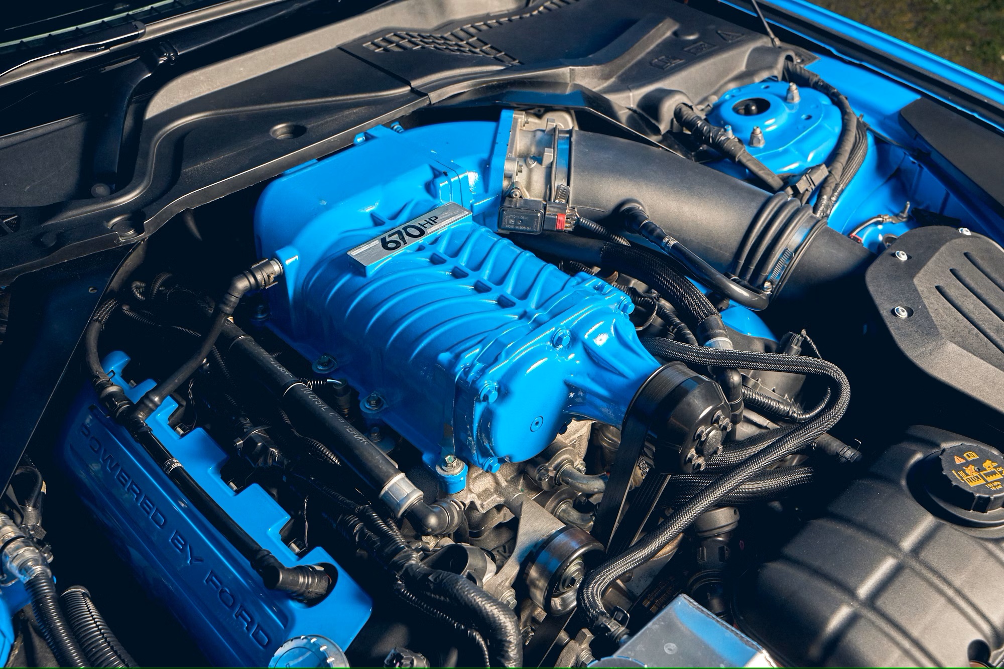 This 2017 Ford Mustang GT has been extensively upgraded, most notably with a Tickford/Roush supercharged 5.0-litre V8 engine, now producing around 670 horsepower sent to the rear wheels through a six-speed automatic transmission.