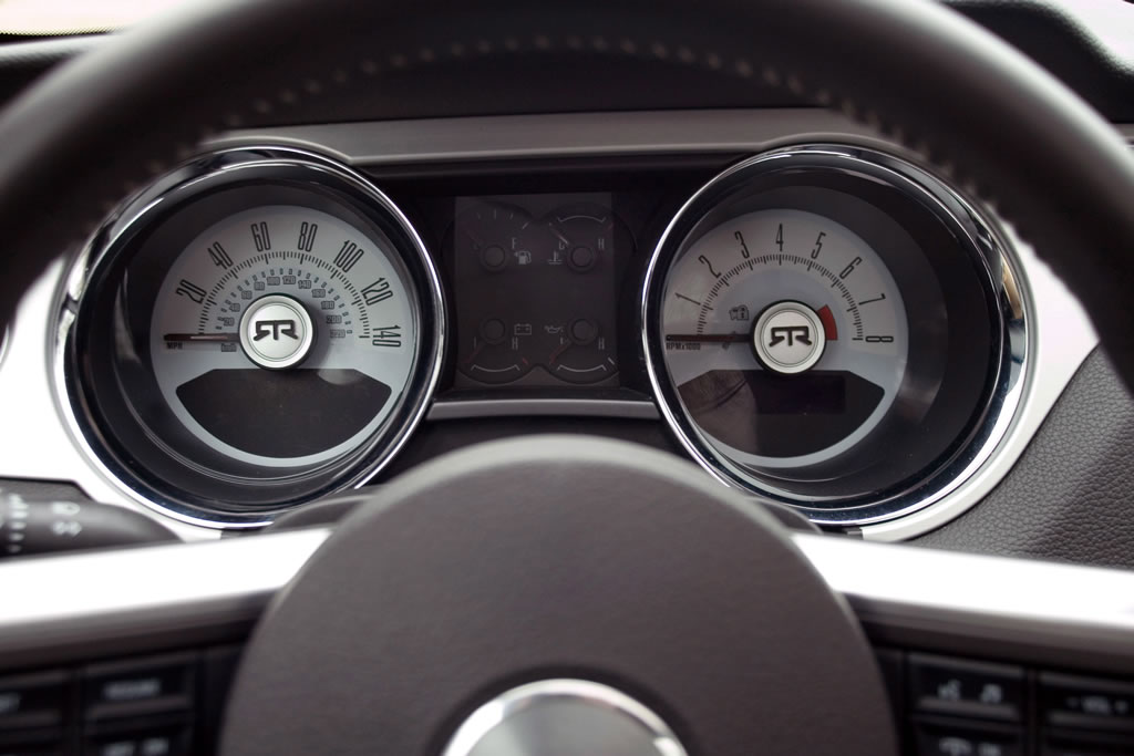 Exterior enhancements include a chin spoiler with splitter, rocker splitters, a rear diffuser and aluminum rear spoiler. Also a unique Mustang RTR stripe design will add distinctive style. The interior receives a few minor touches like exclusive floor mats, shifter knob and RTR emblems.