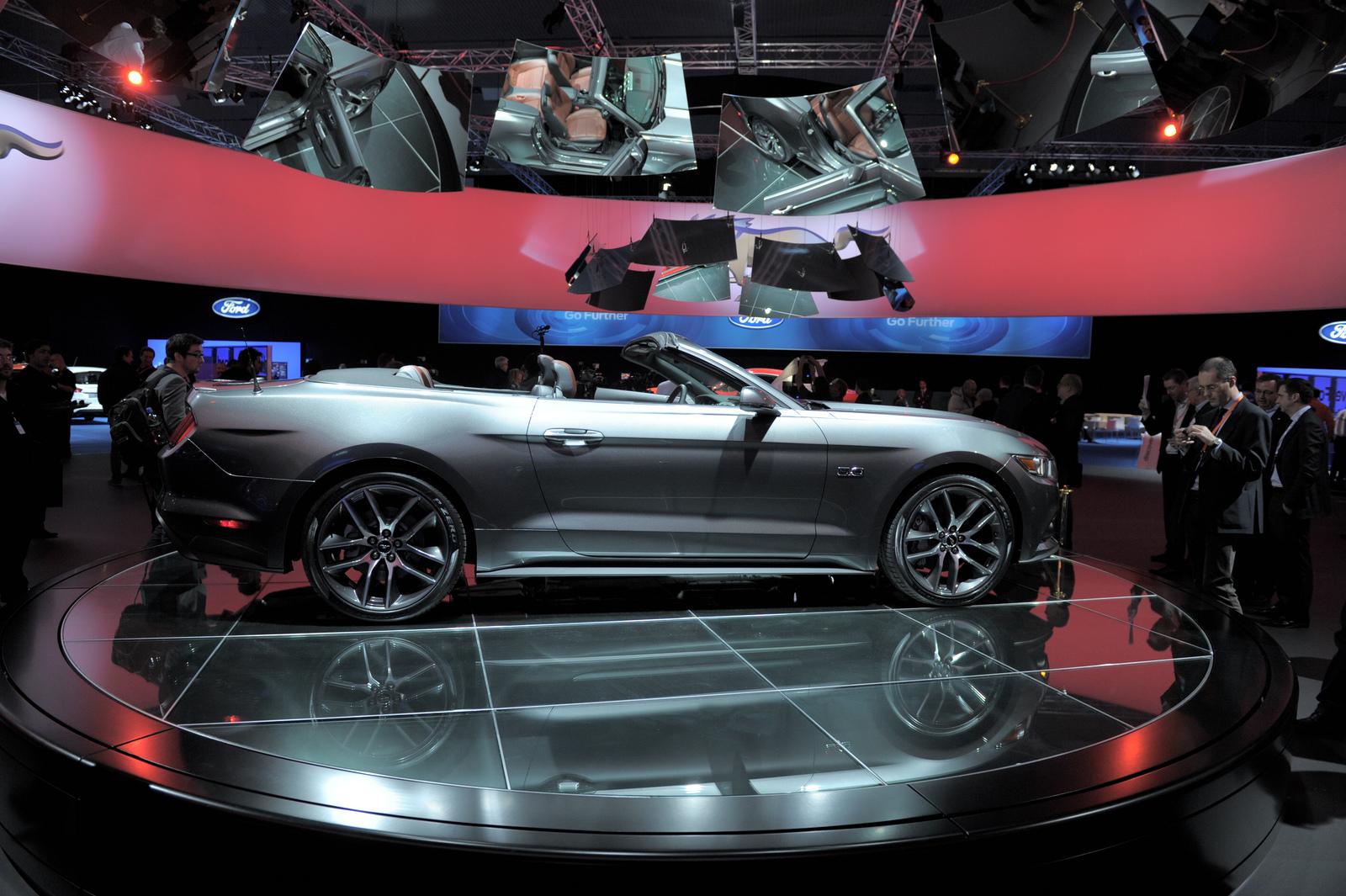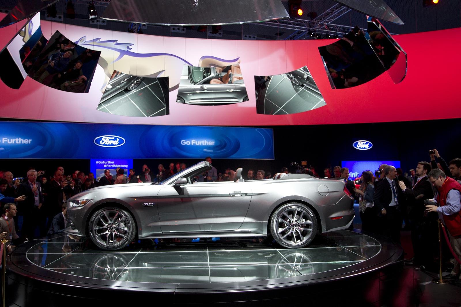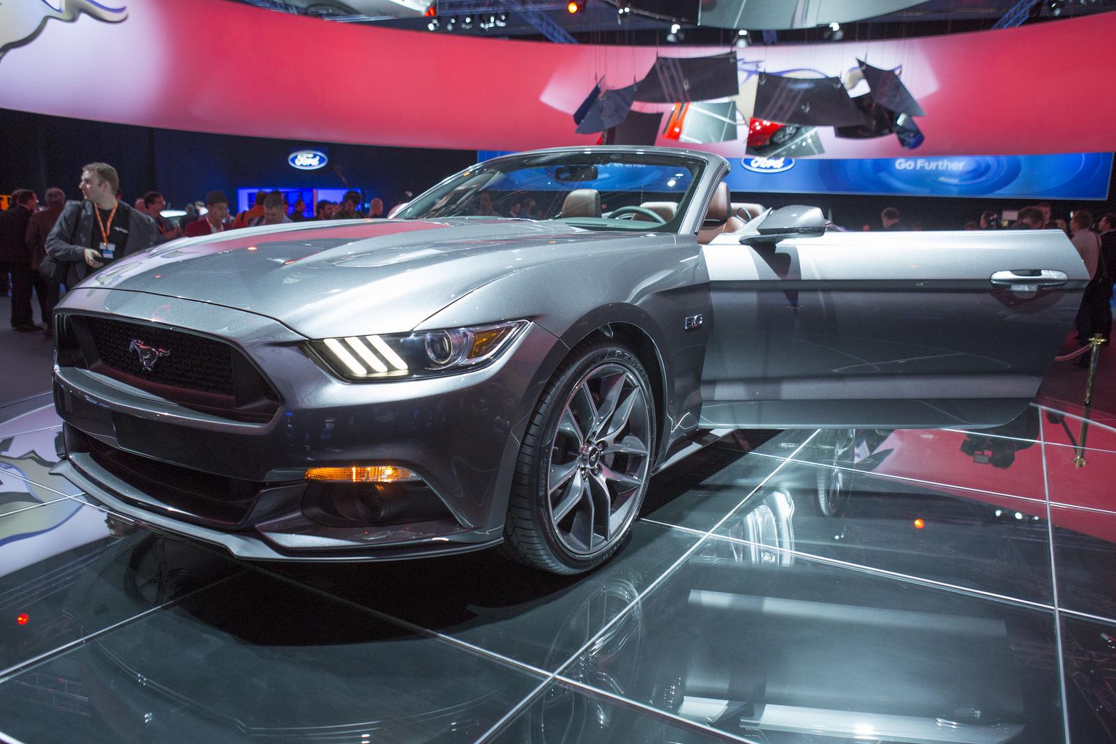 The 2015 Ford Mustang convertible was unveiled to the World in New York City, Sydney, Australia and Barcelona, Spain. At each location the model of choice was the Mustang GT 5.0 in new color Magnetic Metallic with brown and black leather seats.
