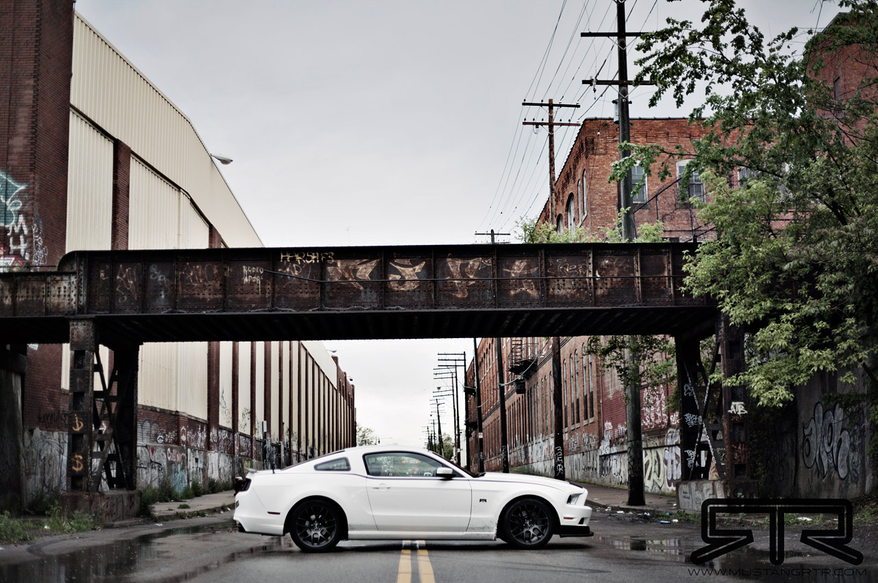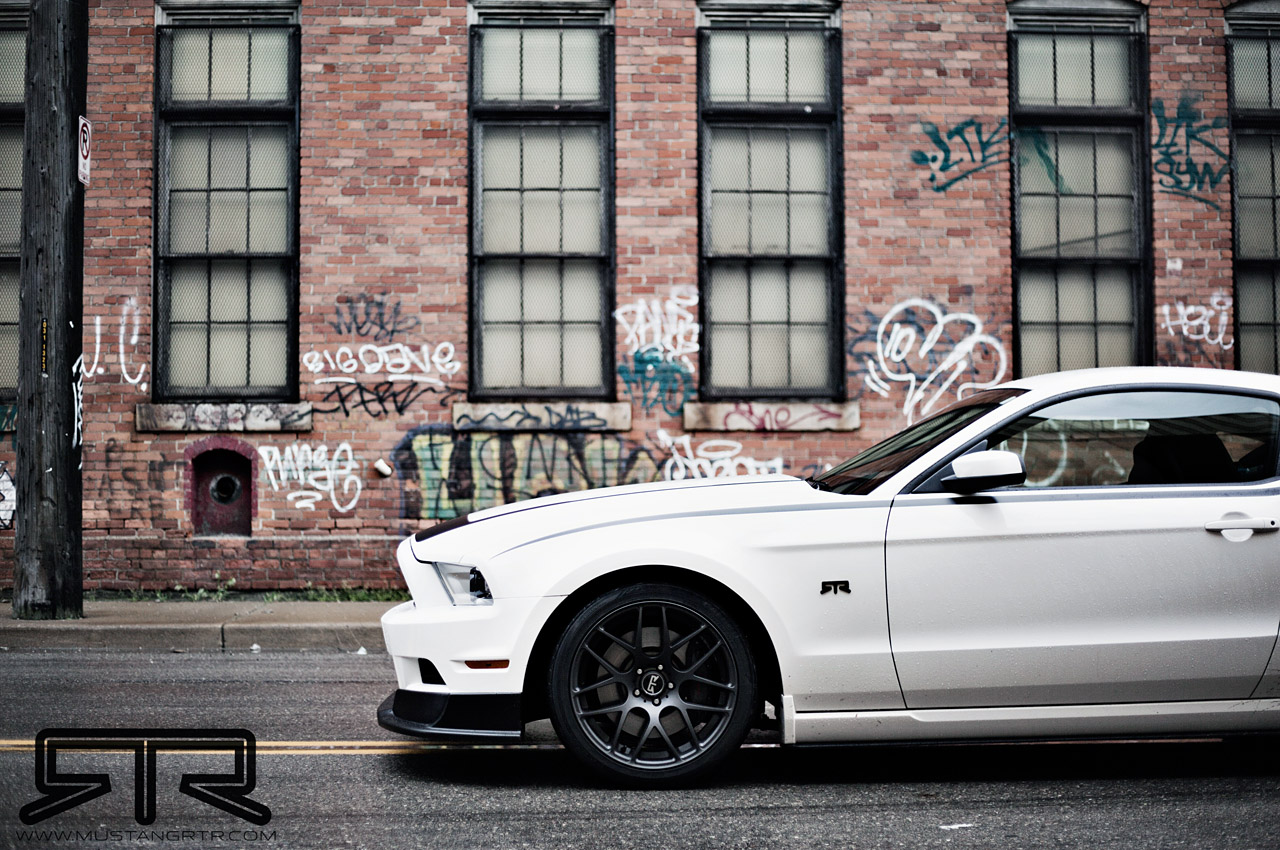 The 2013 Mustang RTR appearance package includes the following upgrades: RTR chin spoiler;rocker splitters; RTR rear diffuser; aluminum RTR rear spoiler; RTR stripe kit; RTR badging; RTR rear deck lid applique; and 19 x 9.5 inch RTR wheels with Falken ultra high performance tires.