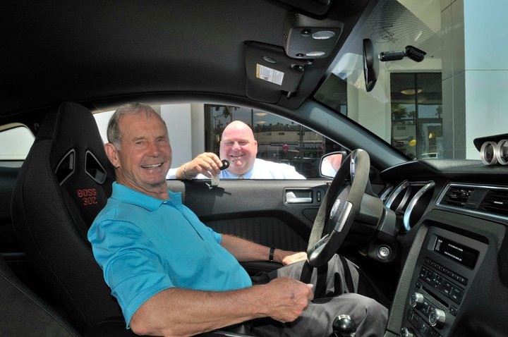 Racing legend Parnelli Jones recently took delivery of a new black 2012 Mustang Boss 302 Laguna Seca edition. Parnelli is a legend in motorsports racing and is most famous for his 1963 Indy 500 and 1970 TransAm Championship victories but from the looks of the photos he still has speed on his mind. Check out the photos below.