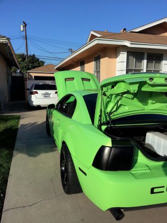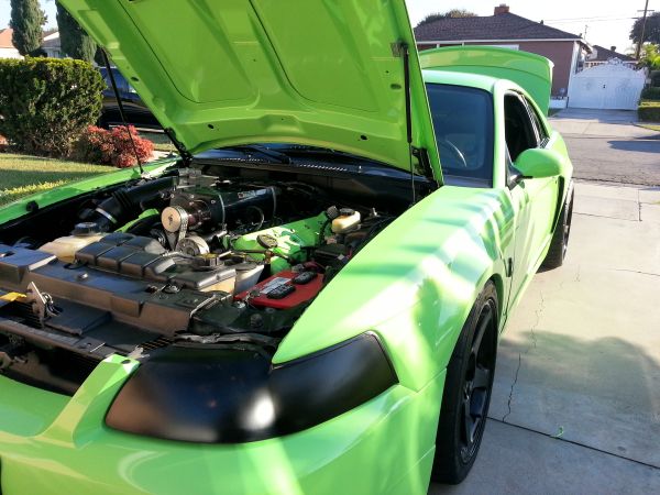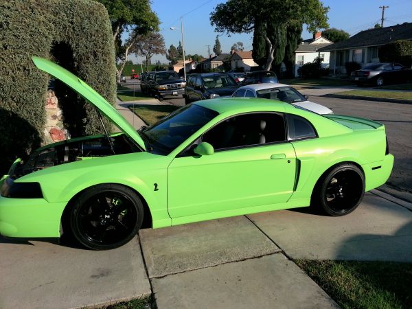 One of the new colors for the 2013 Mustang was a very bright shade of green dubbed Gotta-Have-It-Green. As unique as it may be its a love it or hate type color and for the most part the color was well received by the Mustang community. One Mustang fan loved the new GHIG color so much he painted his entire 2003 SVT Cobra. Its not bad looking but something tells me it was a good idea not to offer a green color option in 2003. Check out more photos below.