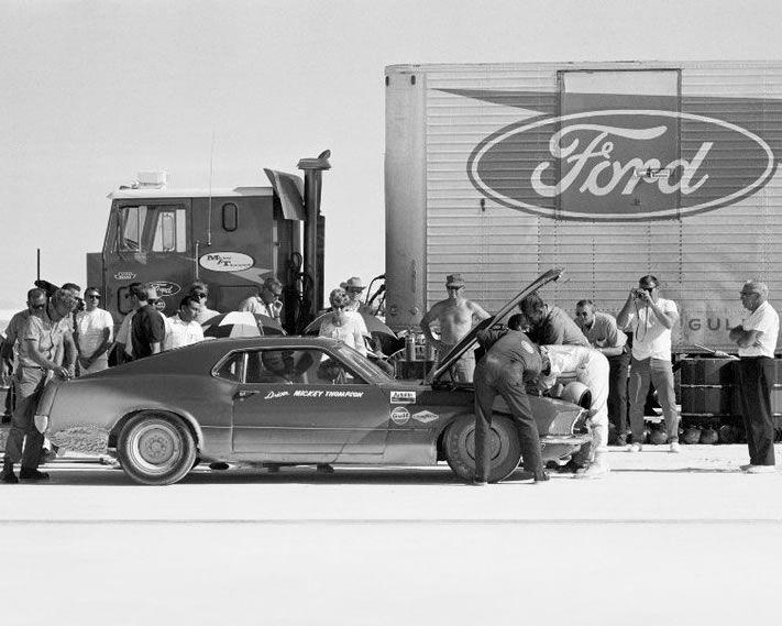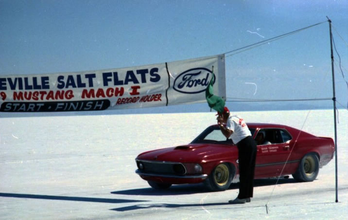 Ford Motor Company has just released a slew of photos from 1968 showing Mickey Thompson and co-driver Danny Ongais. The photos depict several 302 powered 1969 Mustangs at the Bonneville Salt Flats where Thompson and Ongais set 295 speed and endurance records. Check out all the photos below.