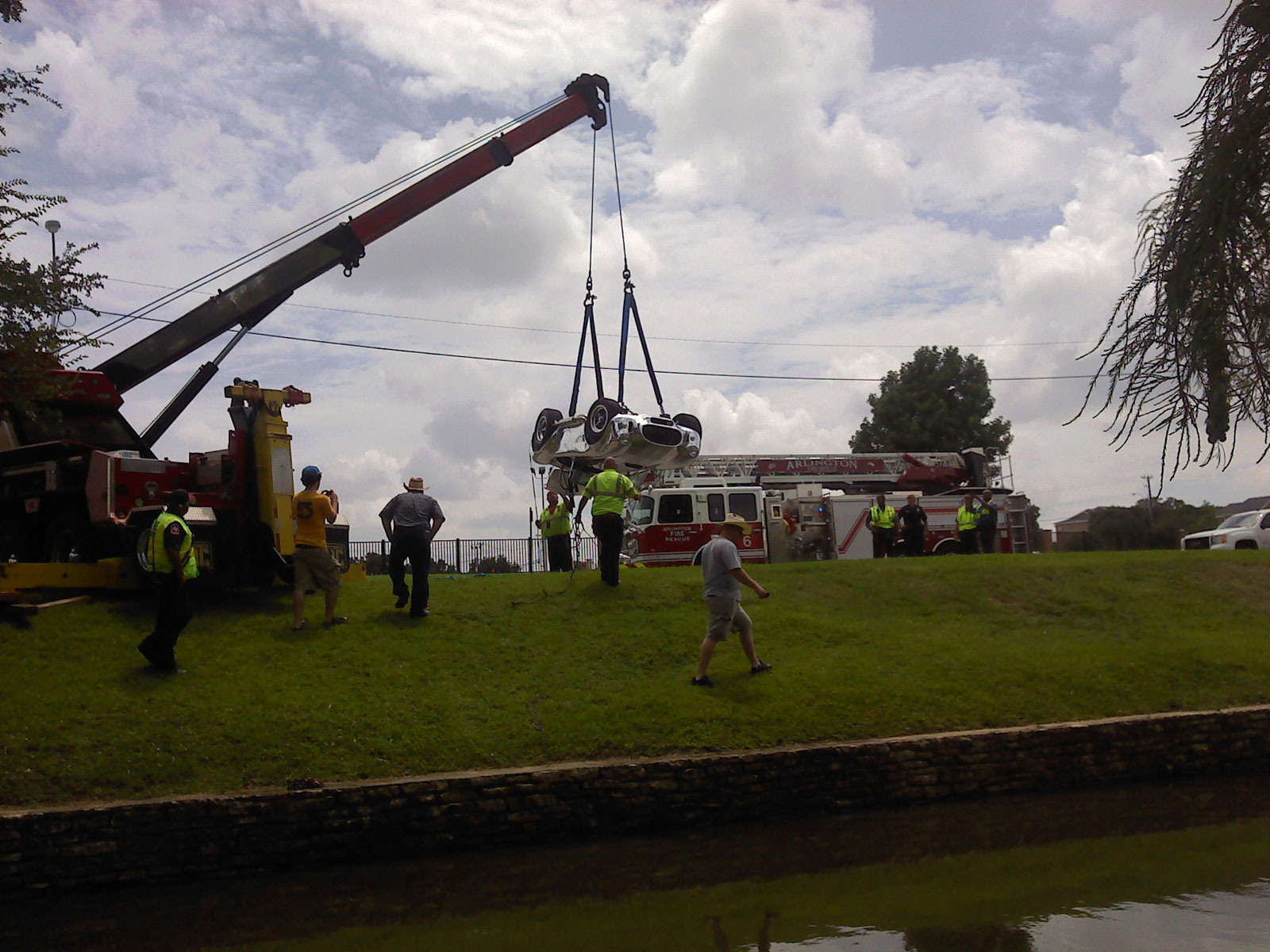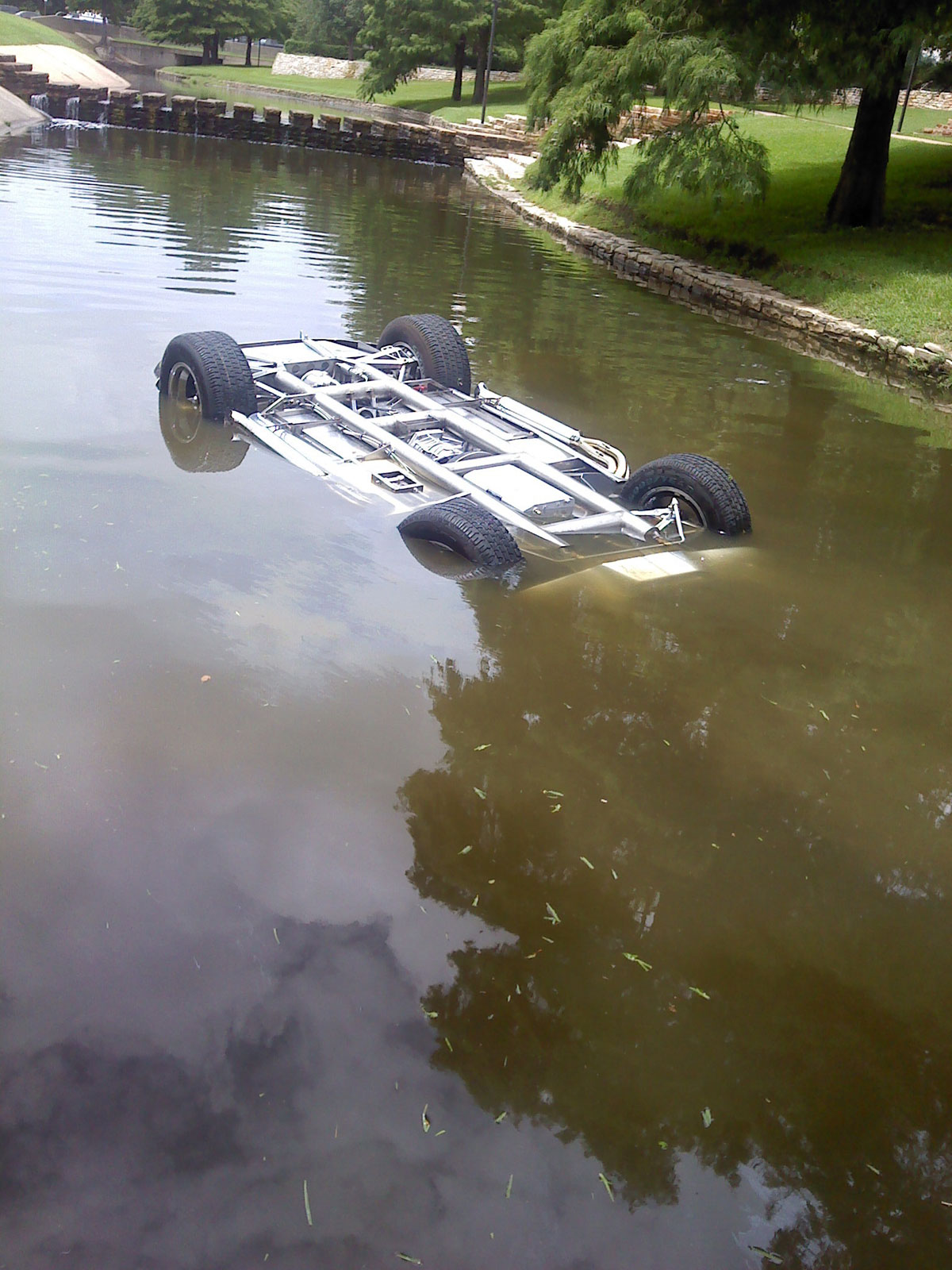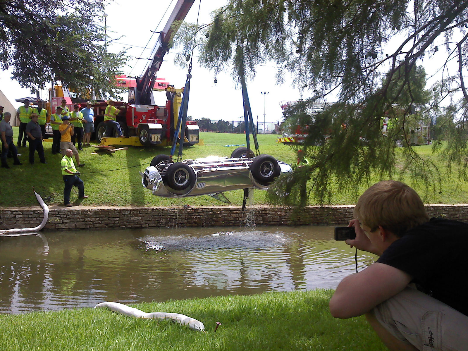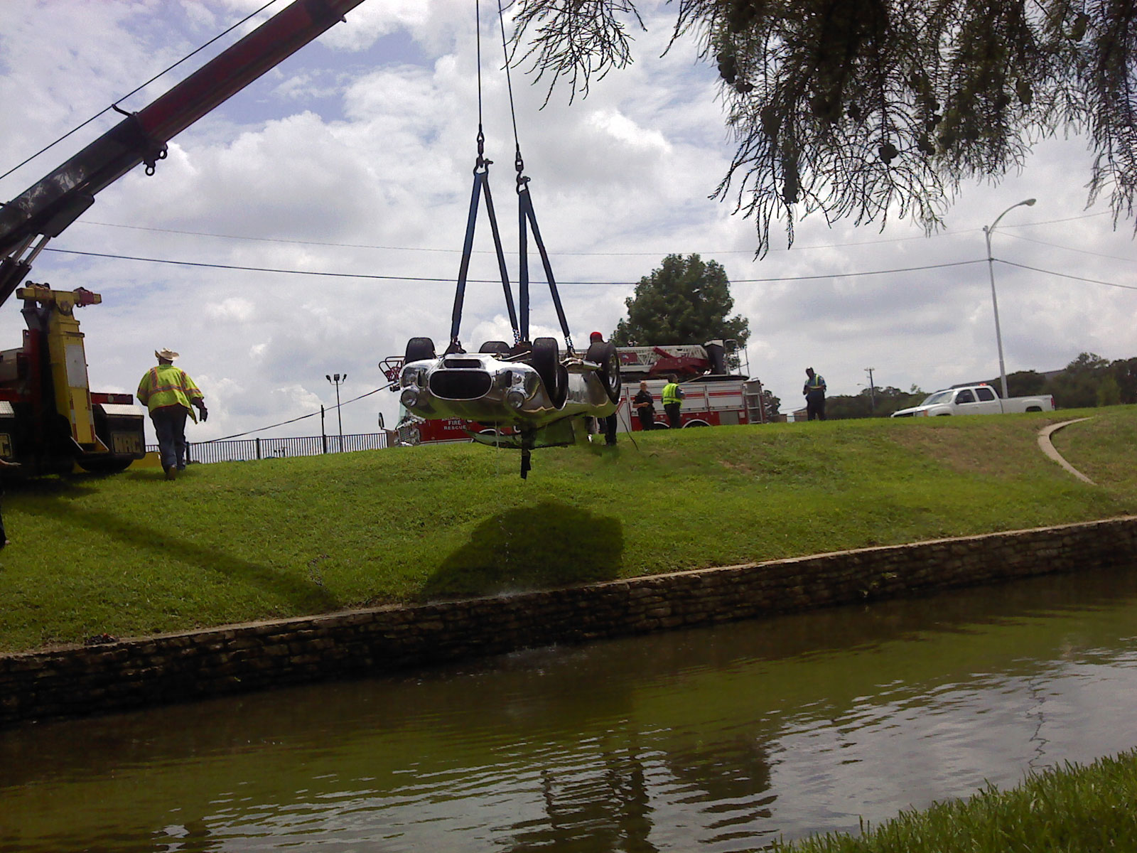 This past weekend a few miles from where I live here in Arlington, Texas a 57-year-old man lost control of his polished Aluminum Cobra replica and ended up in a waterway adjacent to the roadway. The driver of the replica Cobra was attending an event called Texas Autocross Weekend at the University of Texas at Arlington when the Cobra’s throttle stuck wide open and the car spun out of control hitting a curb and flipping upside down landing in a creek. The Cobra was not taking part in the event, the driver was merely cruising by to show off his mirror like finish.