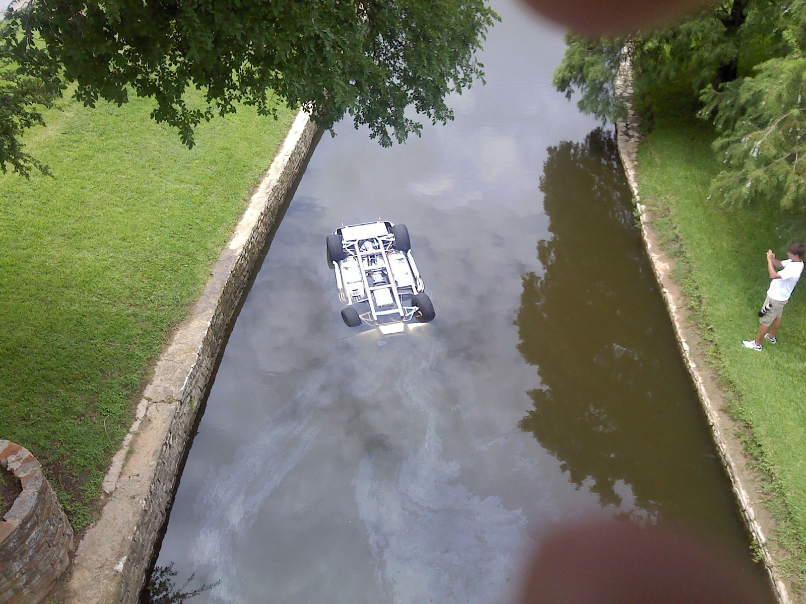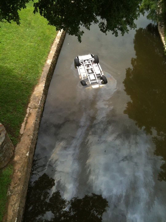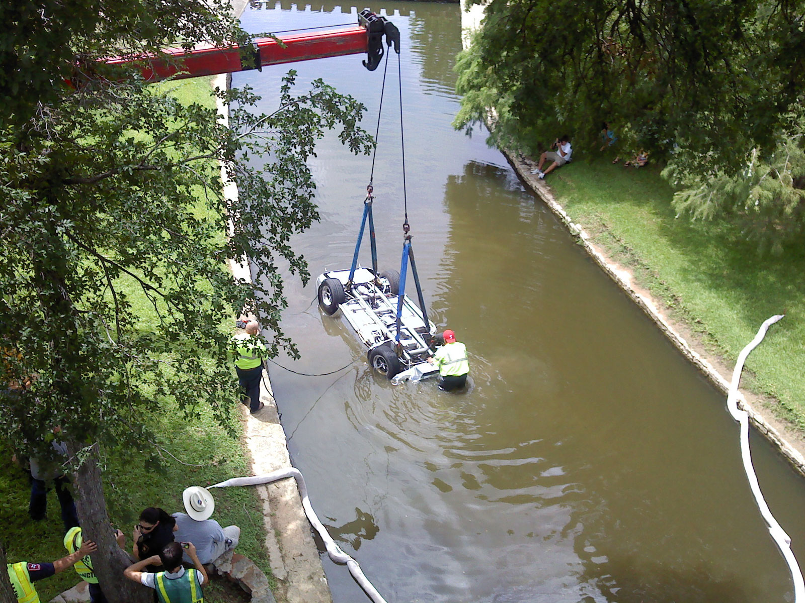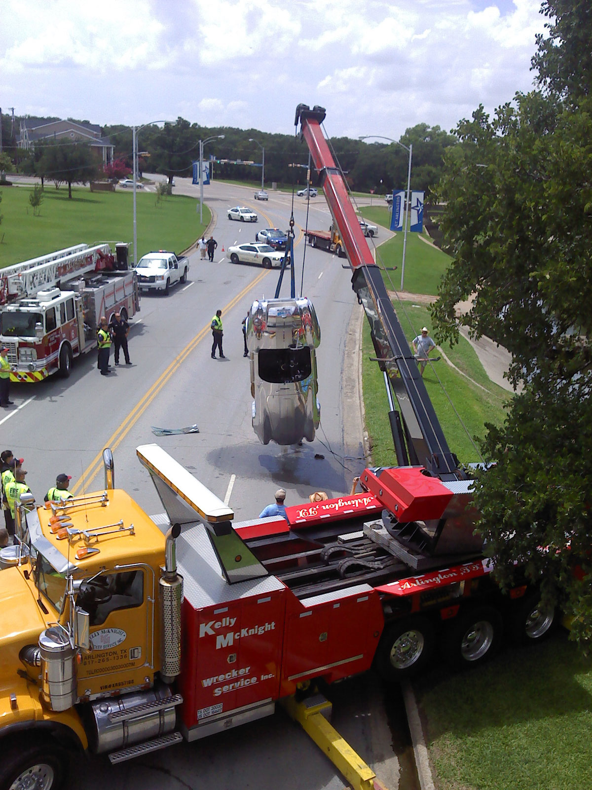 This past weekend a few miles from where I live here in Arlington, Texas a 57-year-old man lost control of his polished Aluminum Cobra replica and ended up in a waterway adjacent to the roadway. The driver of the replica Cobra was attending an event called Texas Autocross Weekend at the University of Texas at Arlington when the Cobra’s throttle stuck wide open and the car spun out of control hitting a curb and flipping upside down landing in a creek. The Cobra was not taking part in the event, the driver was merely cruising by to show off his mirror like finish.