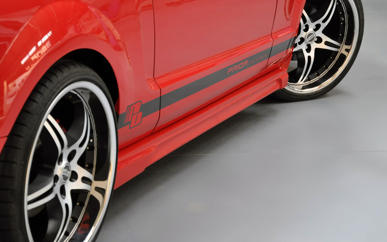 Company Prior Design from Kamp-Lintfort at the Lower Rhine, which specialises in exclusive aerodynamics components, offers a complete styling kit for the ancestors of the “new” pony car, the Ford Mustang. After installation of a Prior Design front bumper with large cooling air inlets and very low corners, the vehicle front appears much more dynamic and aggressive, giving the previously powerful Mustang an even stronger overtaking prestige. The front cover is balanced by the rear bumper. With its diffusor design, it is directly reminiscent of round-track racing cars and delivered with a US license plate recess. The matching side sill pair harmoniously connects the new end covers and visually lower the car.