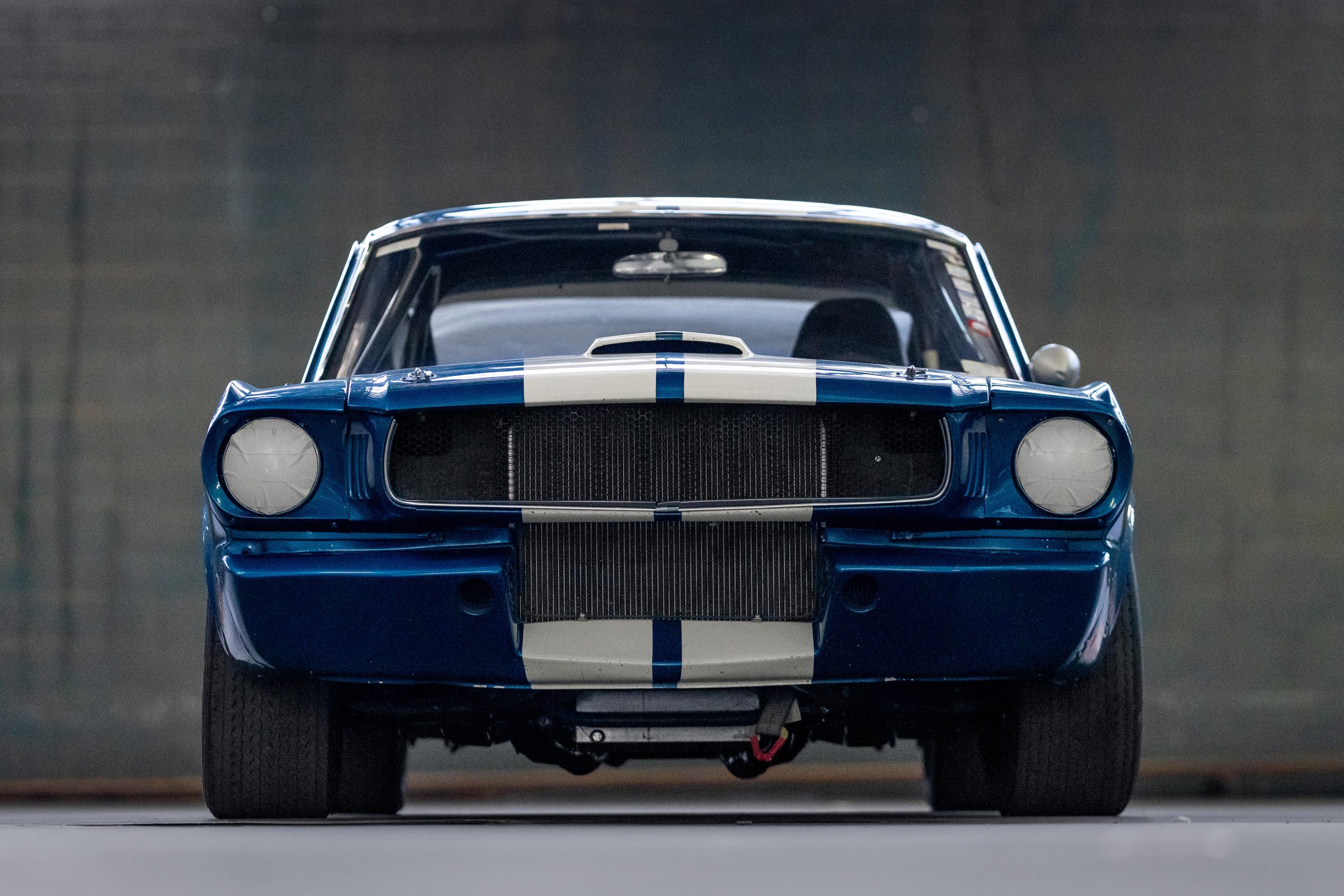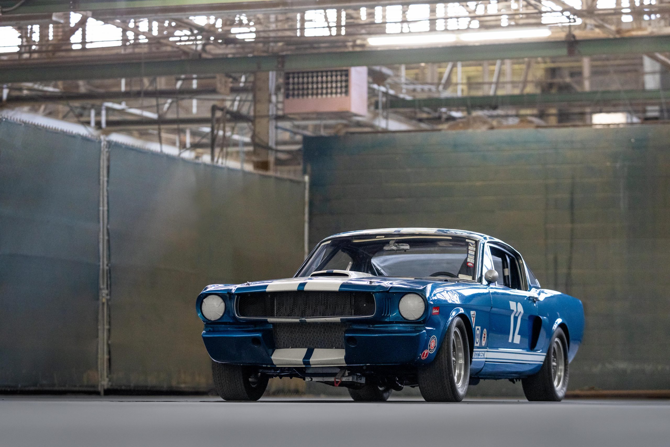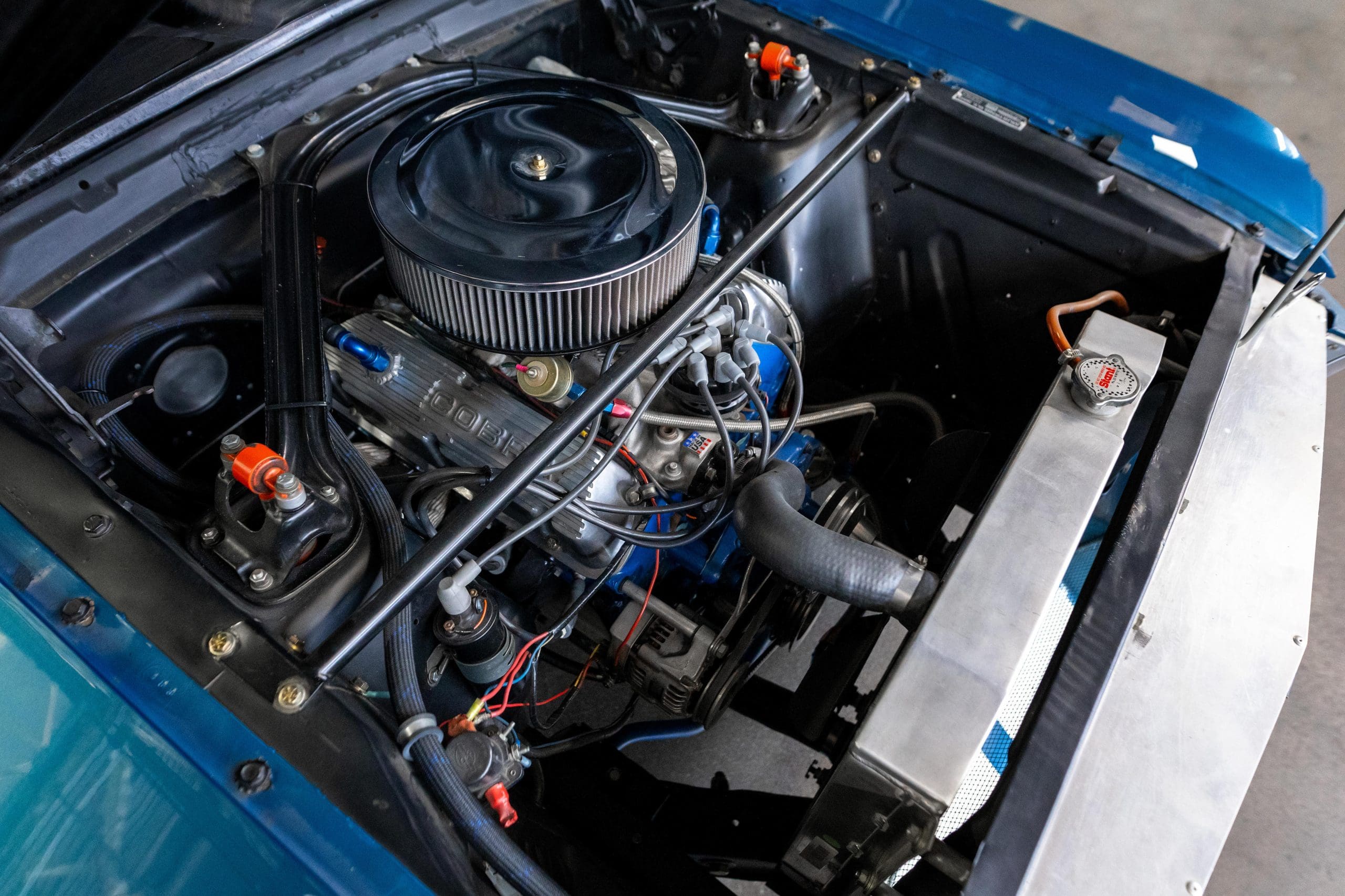 The car later passed through notable owners, including Shelby expert Craig Conley and Arthur Miller, who acquired it in 1998. Under Miller’s ownership, it was converted to GT350 R-Model specifications for vintage racing, featuring a roll cage, fiberglass front apron, brake-cooling side scoops, grey Torq-Thrust wheels, and a lightweight Plexiglas rear screen.