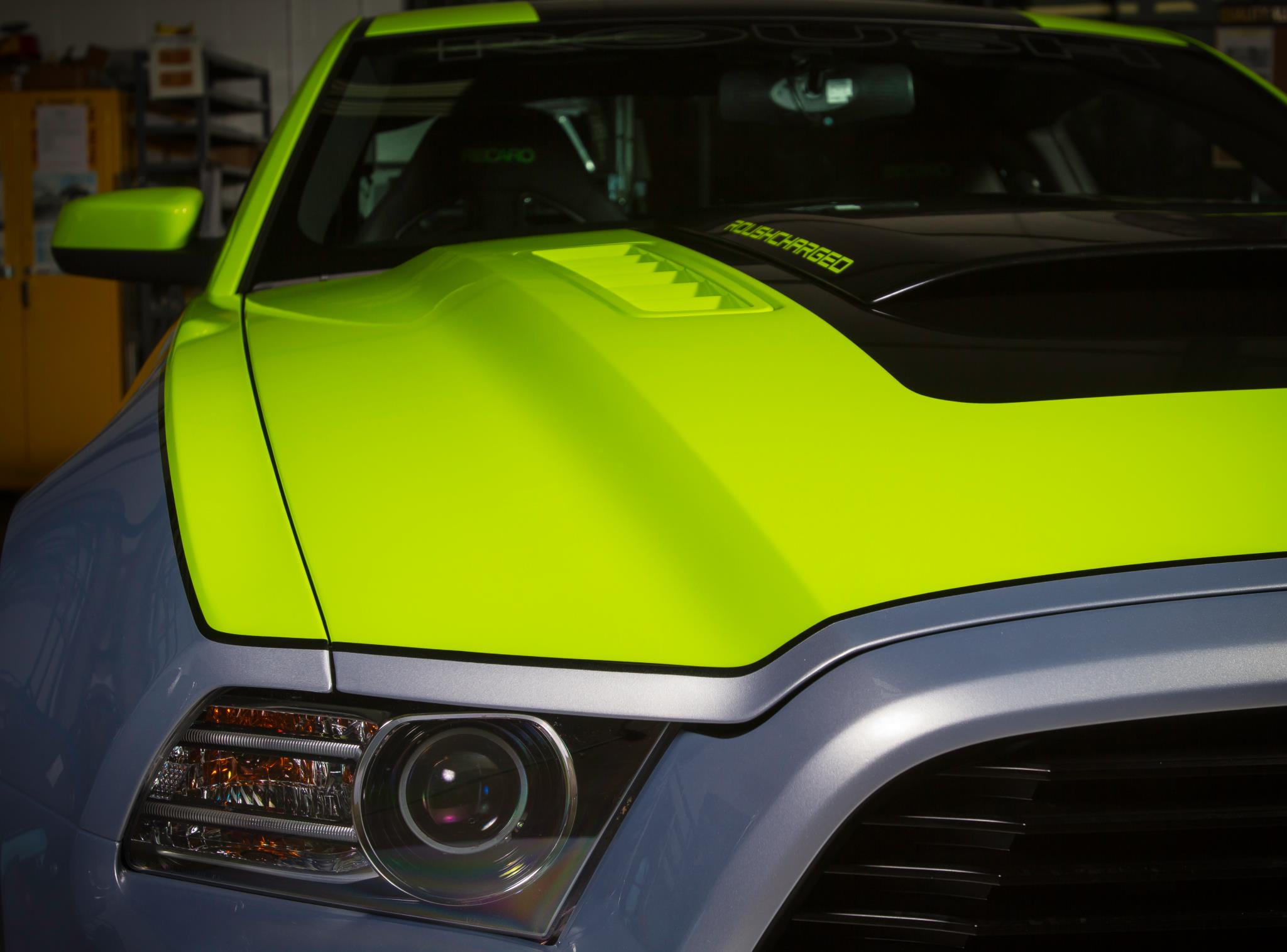 This SEMA Roush Stage 3 Mustang displays a custom paint scheme by Sherwin-Williams Automotive Paints. The Sin City Silver and Luminescent Lime will turn a lot of heads during SEMA this week. ROUSH Performance Mustang and F150 Truck customers will also have the opportunity to upgrade with a custom Sherwin-Williams Paint Scheme beginning in early 2103 for their new vehicle. Look for more details and pricing from ROUSH Performance very soon.